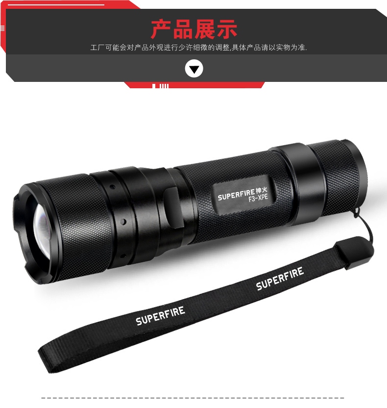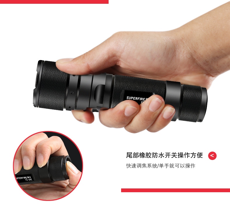 伸縮調(diào)焦型強光手電筒,可單手操作