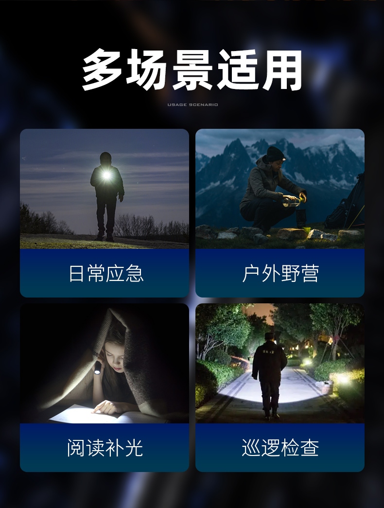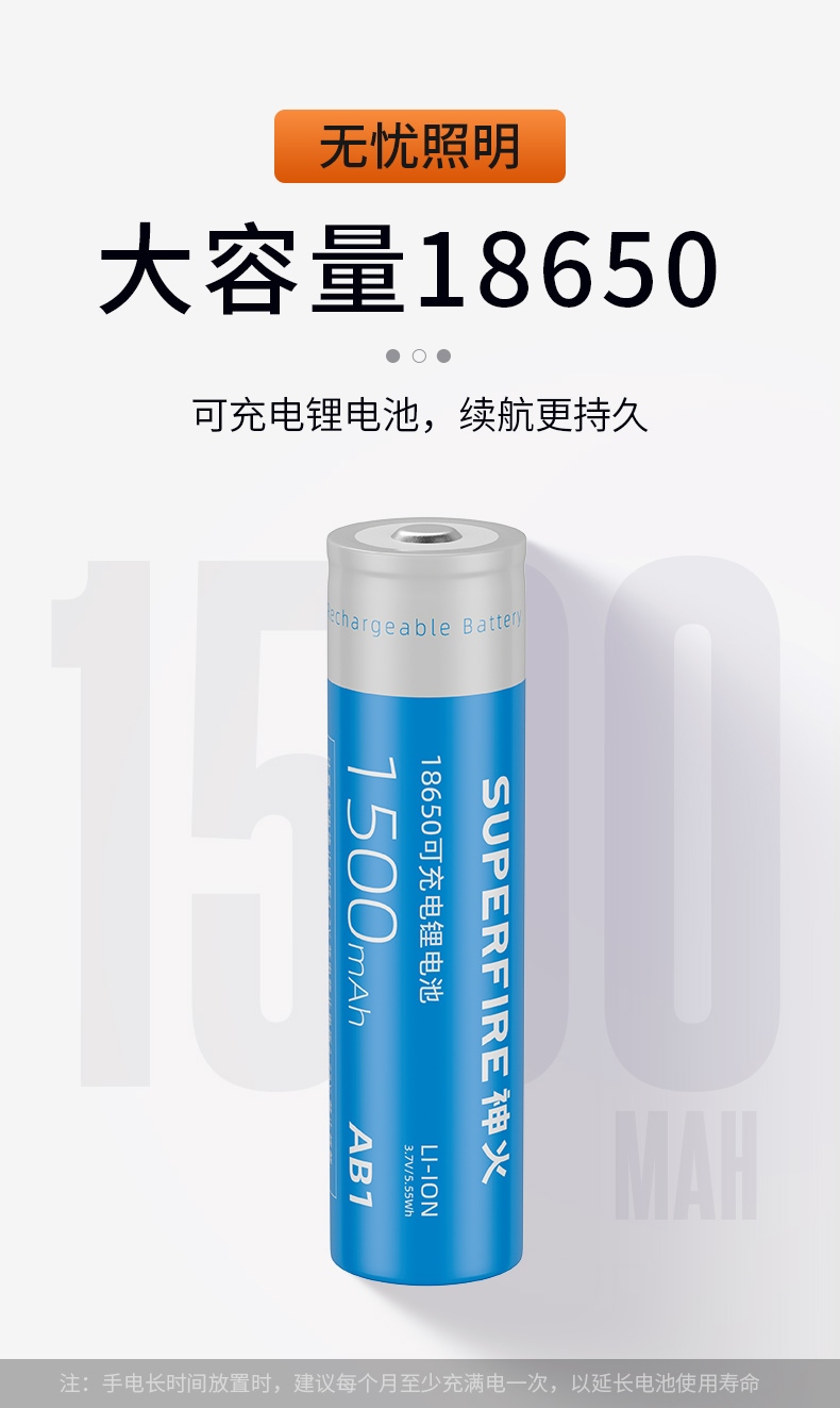 聚光主燈 亮度隨心 輕按后端開關(guān)按鈕,主燈強(qiáng)光點(diǎn)亮,續(xù)按依次切換主燈工作光-爆閃光。主燈開啟狀態(tài)下長按5秒,可實(shí)現(xiàn)光源色溫轉(zhuǎn)換。主燈關(guān)閉狀態(tài)下長按5秒,可開啟燈具最亮照明模式。 爆亮強(qiáng)光 亮如白晝 1500LM大功率高亮光源,點(diǎn)亮頃刻如白晝