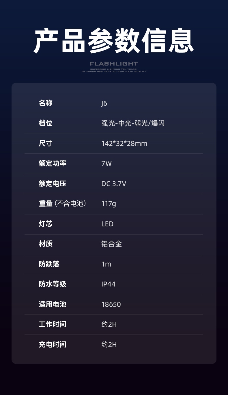 6、鋁合金筒身,防水耐摔。
