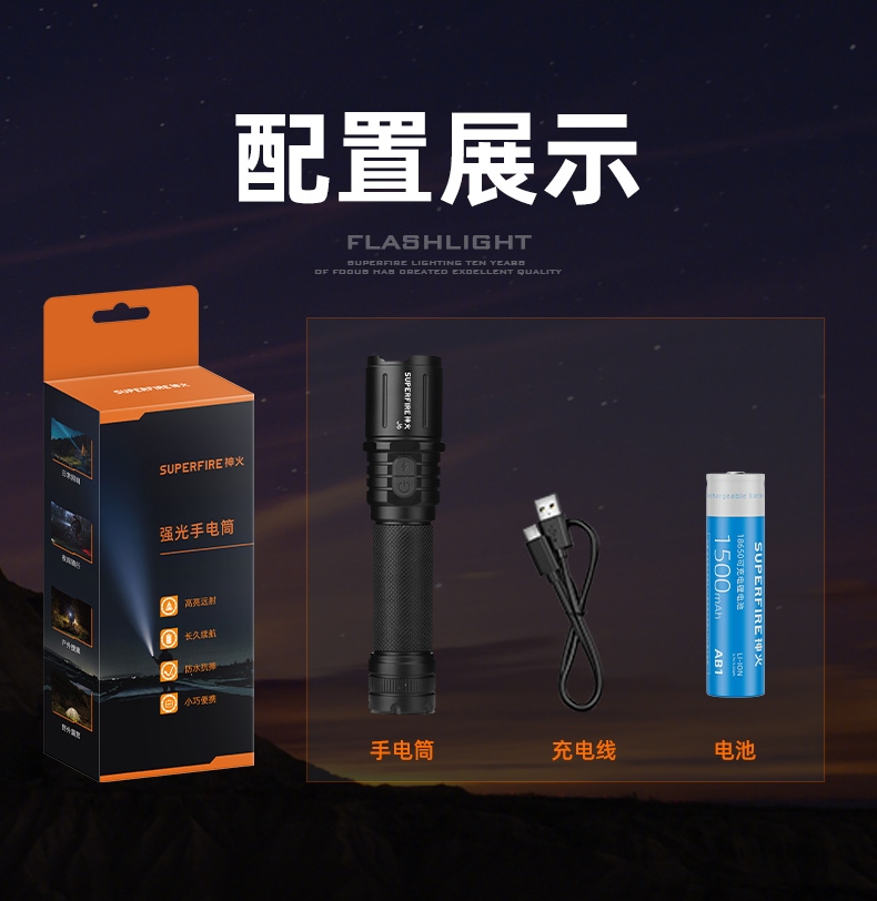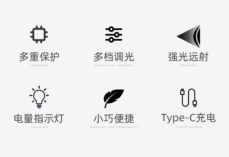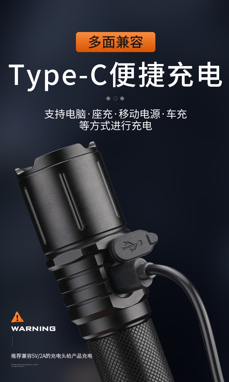 四檔調(diào)光 Type-C充電 電量顯示 鋁合金筒身 持久續(xù)航 強(qiáng)力防水