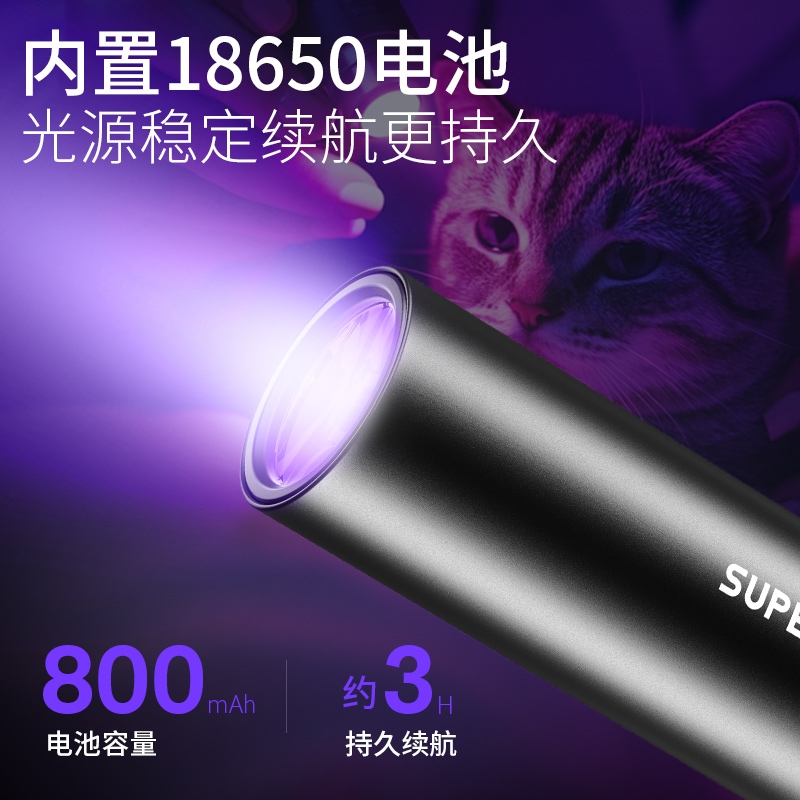 1、紫光手電:可用于驗鈔、識別熒光劑,寵物熒光檢測,鑒別琥珀、蜜蠟,古玩修補鑒定。