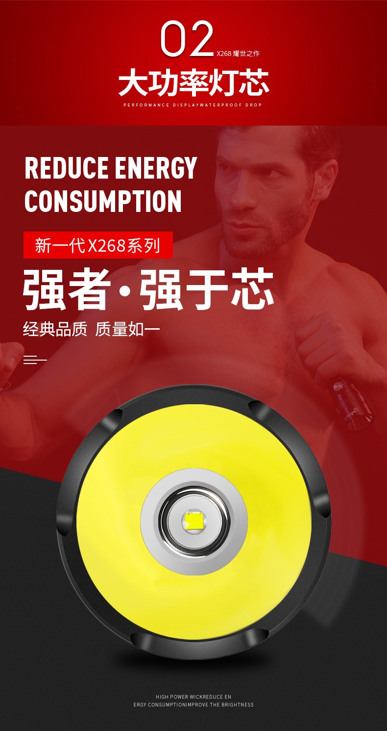 1、多檔調光,可滿足不同使用場景下的照明需求; 2、含提手,握感更舒適。攜帶更簡單; 3、新型高亮遠射燈珠,60W大功率,亮度高,照明效果好。