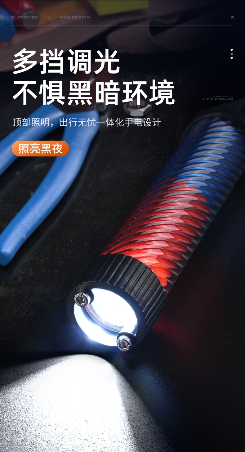 1、六檔調光,可滿足不同使用場景下的照明需求。 2、進口高亮朗明納斯燈珠,照明效果更好。 3、含檔位記憶,任意檔位快捷關機 ,開機恢復關機前檔位。