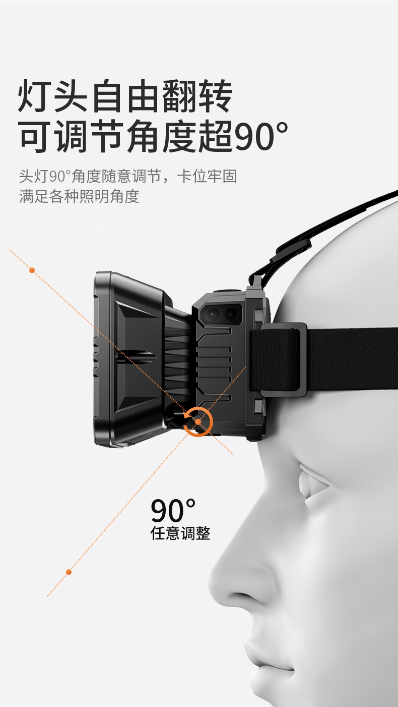 4、頭燈角度調節:超90°角度隨意調節,適宜各環境使用。