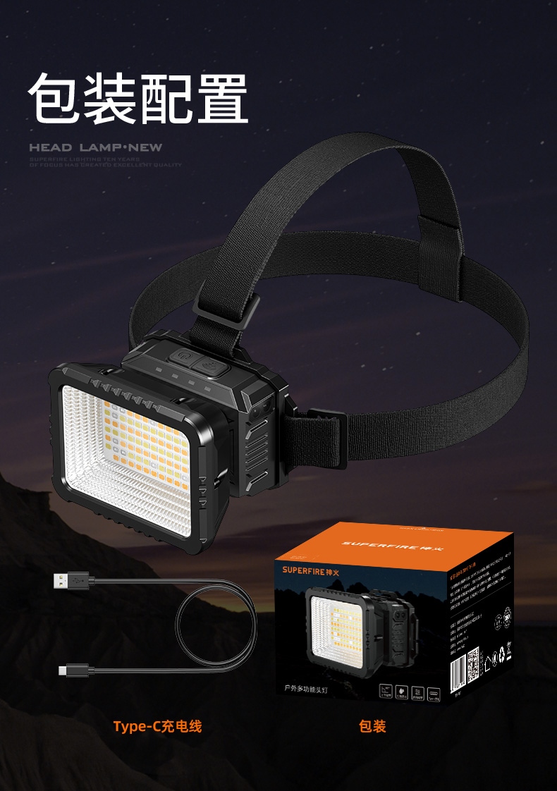 SUPERFIRE神火多燈珠大泛光三色頭燈FL01