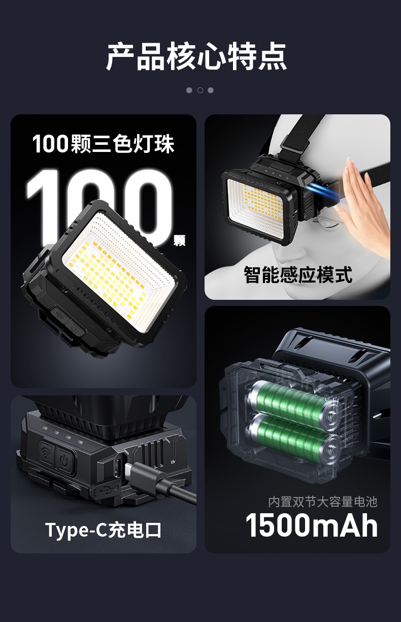 1、多檔調節,自由切換,可滿足不同場景下的使用需求 ; 2、電量顯示:實時電顯,輕松掌握電量,一目了然; 3、頭燈角度調節:超90°角度隨意調節,適宜各環境使用。