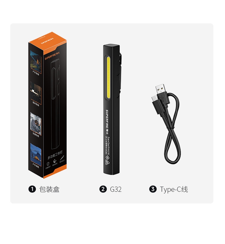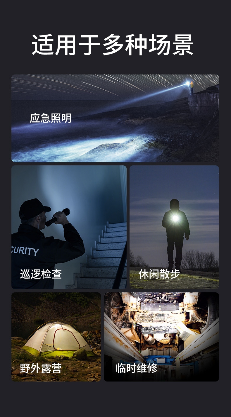5、多樣化充電,使用方便;設(shè)有type-c充電接口,可使用充電器、充電寶、電腦等設(shè)備為手電 充電。