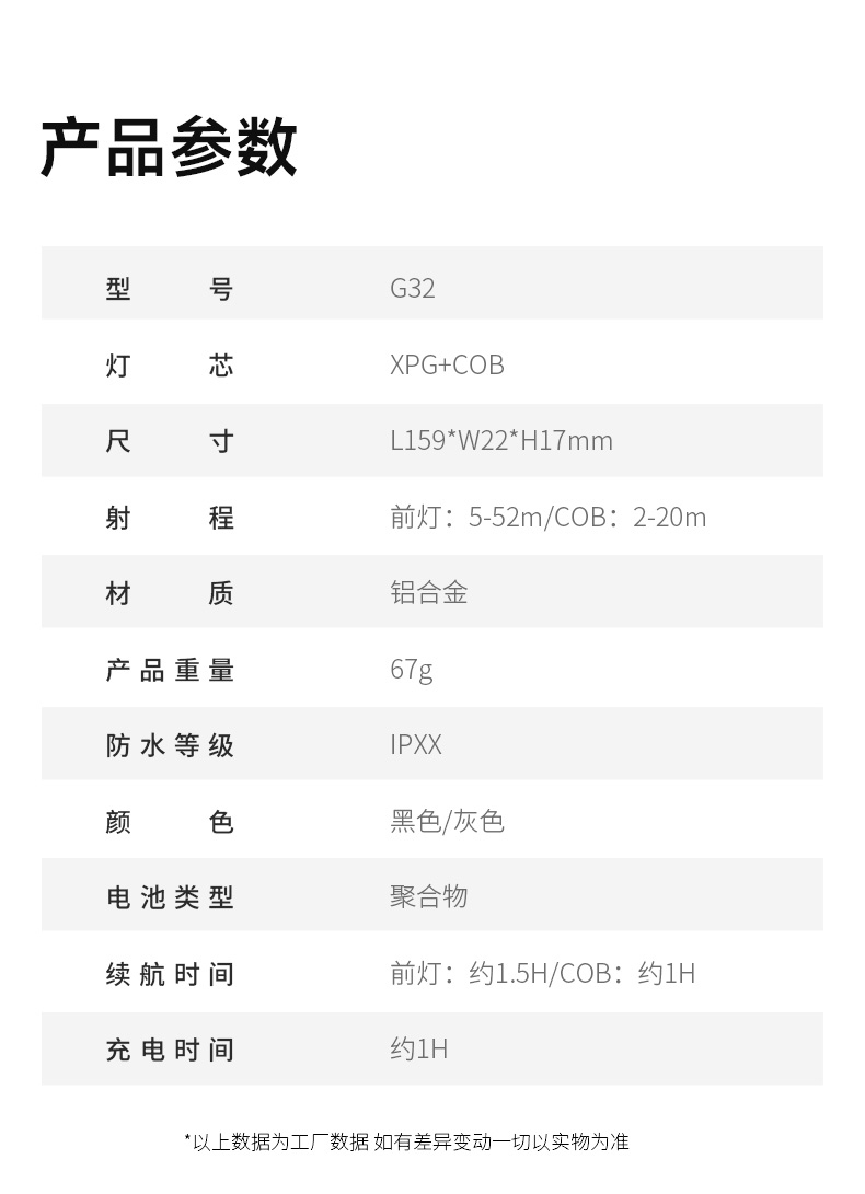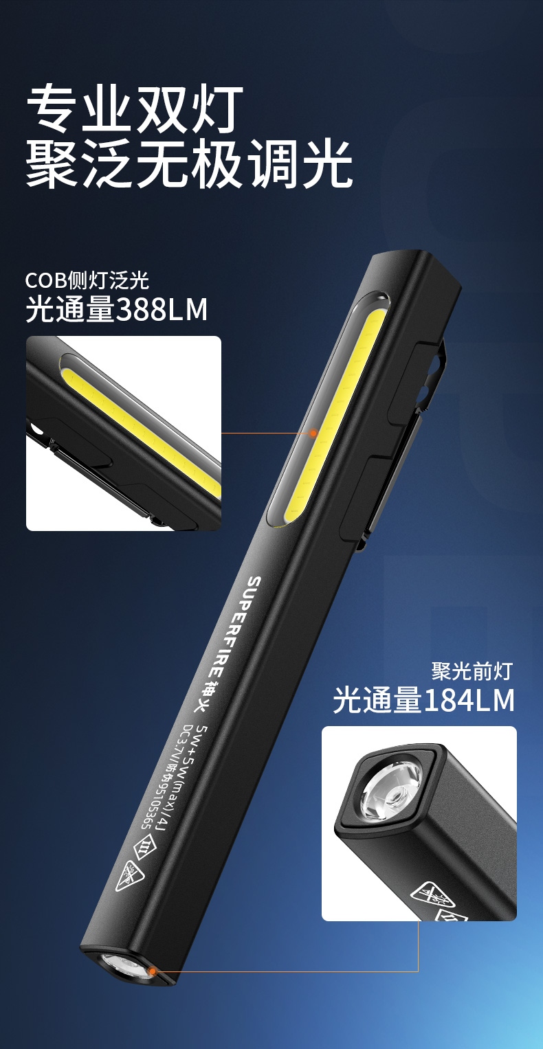 1、前燈、COB燈;聚光泛光自由切換,可滿足不同場景下的使用需求 。