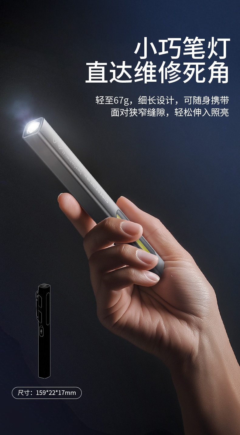 3、多功能工作燈;設(shè)有磁吸、抱夾等功能,光源可無極調(diào)光;使用方便。