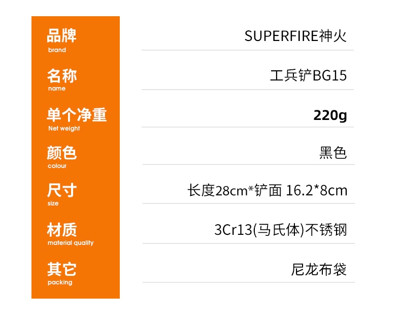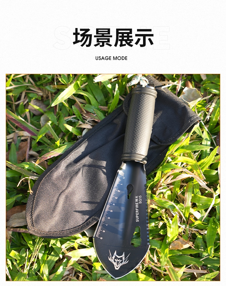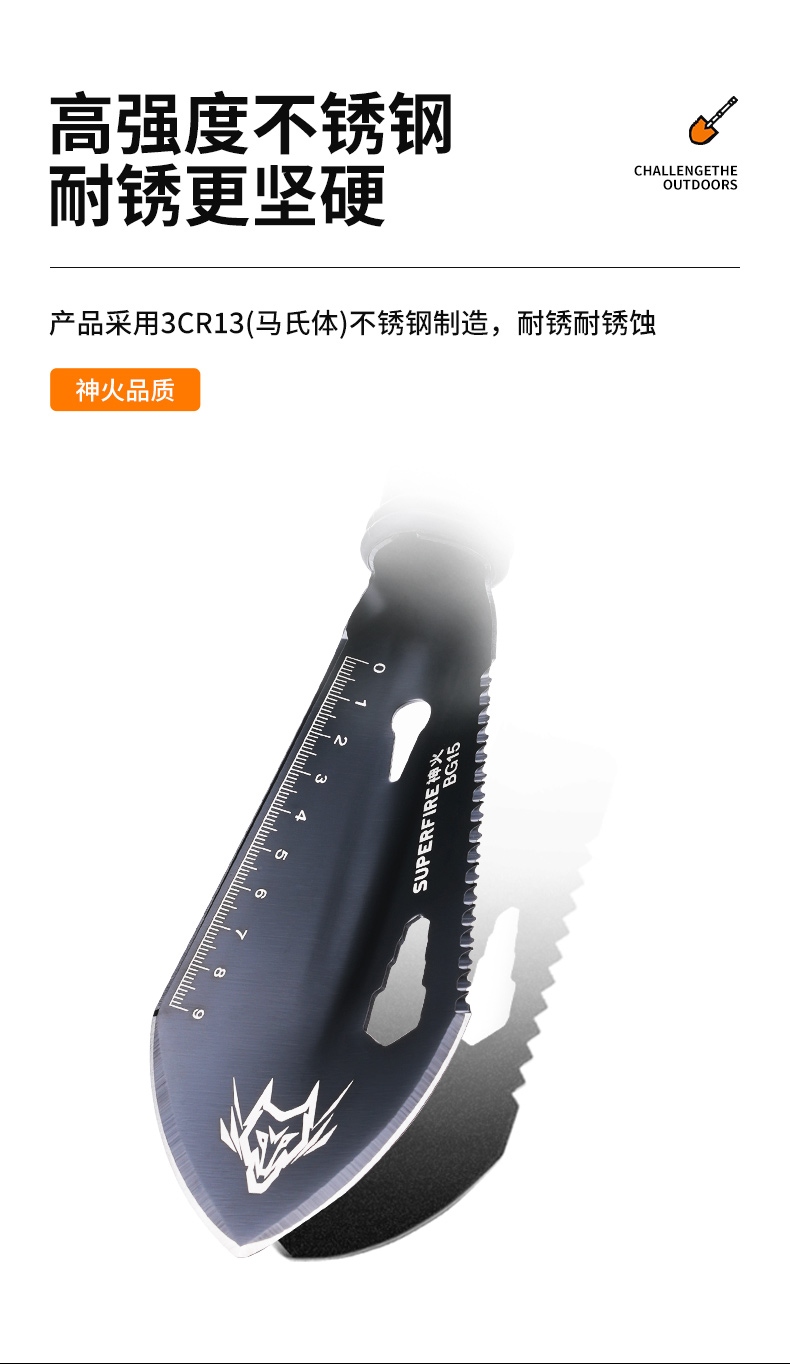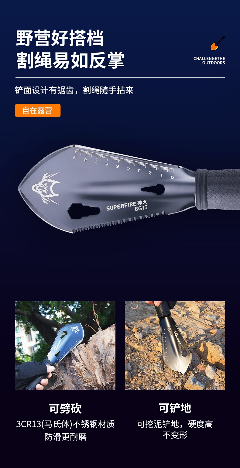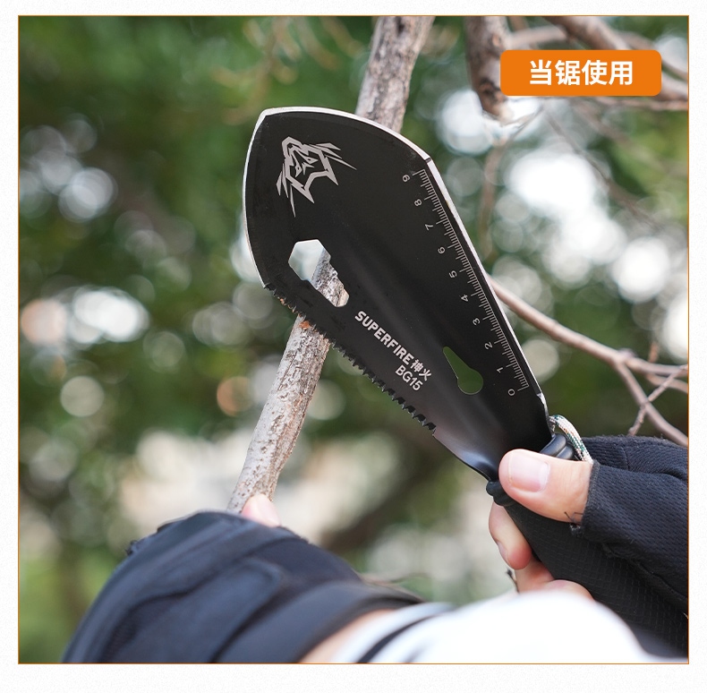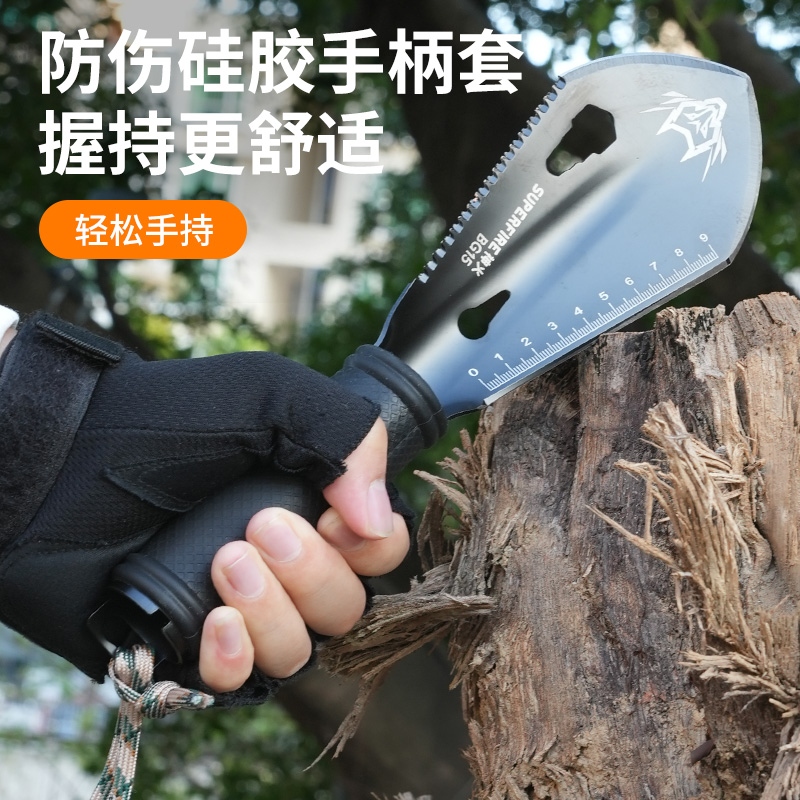1、功能多樣:可做 刨、劈、鏟、鋸、拍、護、破、鑿、量、削、撬、割繩、起釘、旋螺帽。