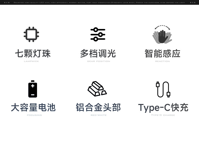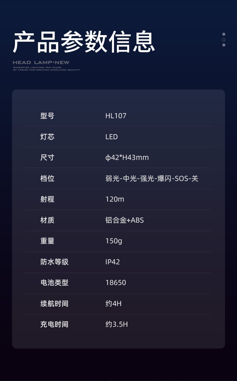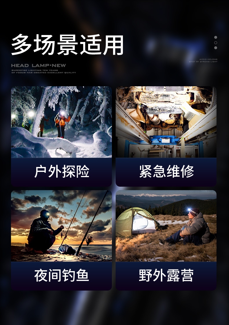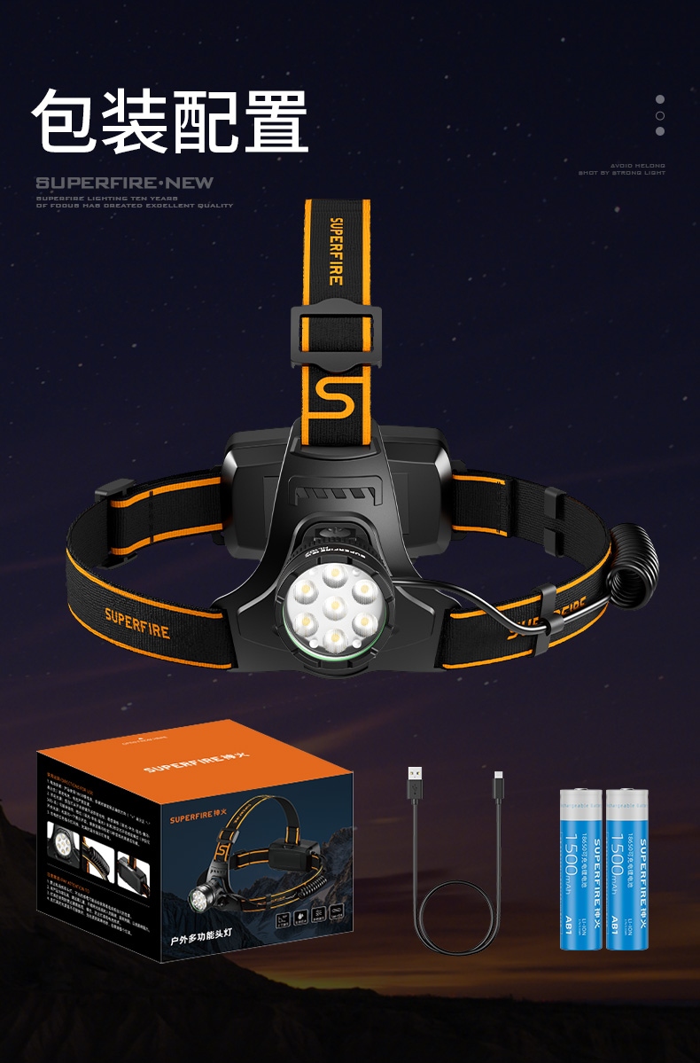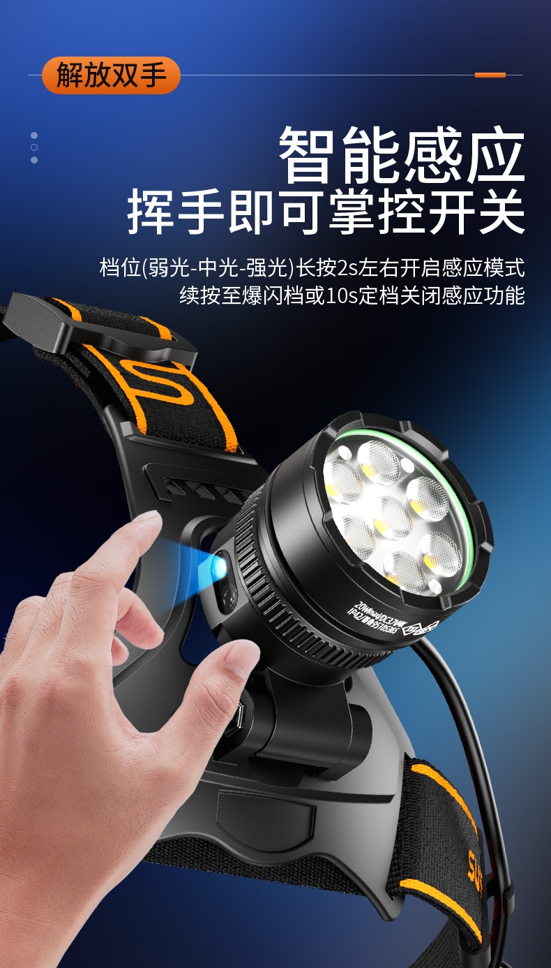 強(qiáng)光亮度,運(yùn)動頭燈,前后均衡設(shè)計,輕便不壓頭,可調(diào)節(jié)式頭燈帶,佩戴方便舒適,伸縮調(diào)焦,光照范圍大,照射距離遠(yuǎn),頭燈角度調(diào)節(jié),超90度角度隨意調(diào)節(jié),適宜各種環(huán)境使用