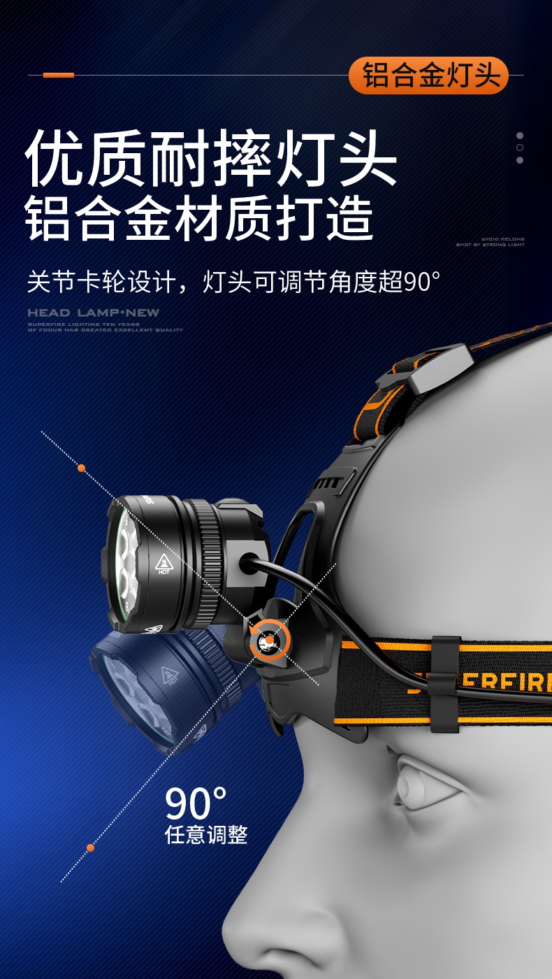 5、頭燈角度調(diào)節(jié):超90°角度隨意調(diào)節(jié),適宜各環(huán)境使用;