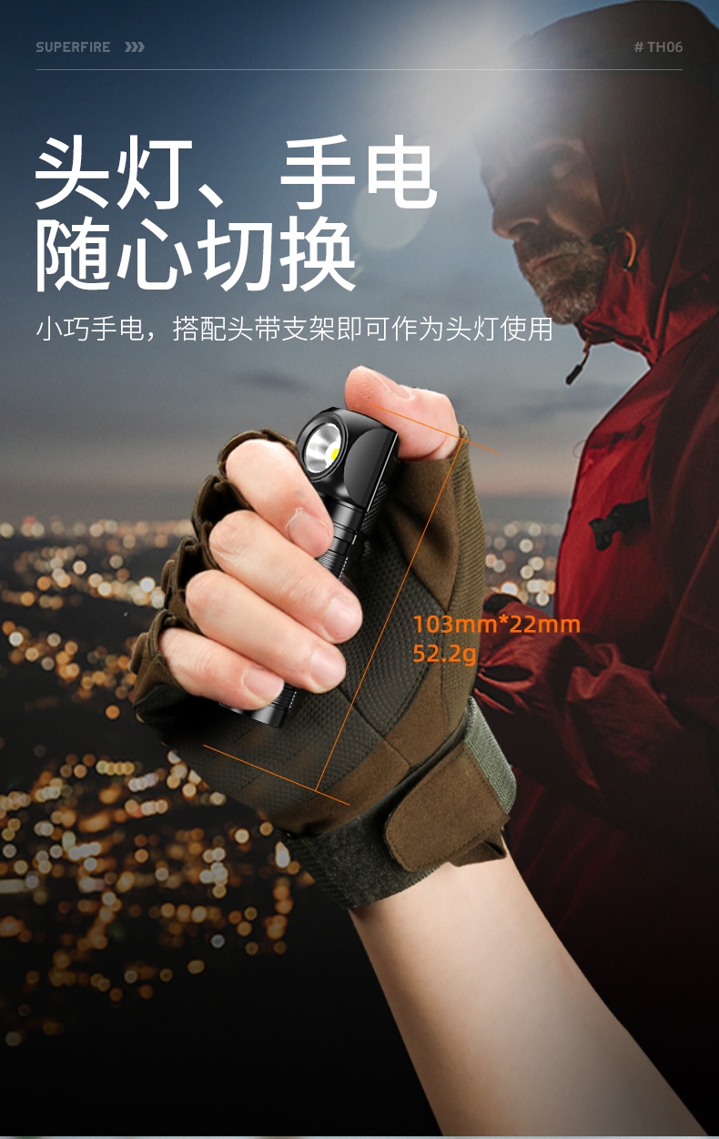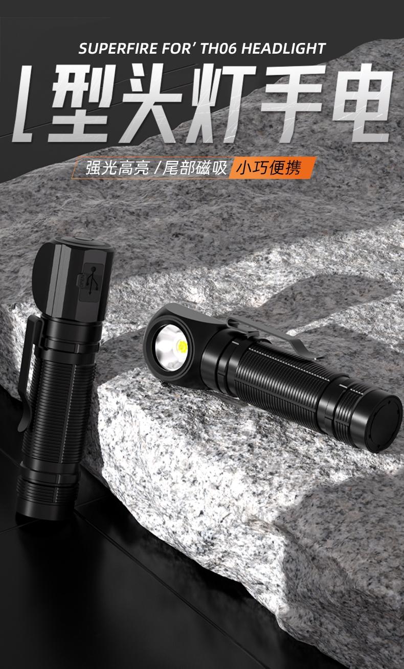 1.L型頭燈手電,強(qiáng)光高亮,尾部磁吸,小巧便攜;