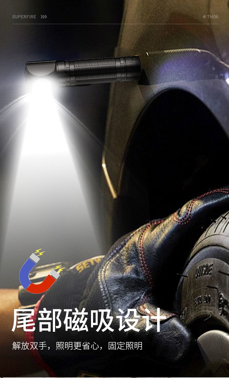 5.尾部磁吸設(shè)計(jì),解放雙手,照明更省心,固定照明;