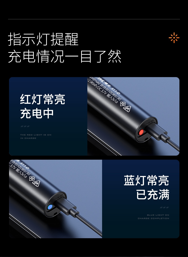 1.單擊左邊開關開啟感應功能,同時開啟強光檔,續按關閉感應功能(關閉感應功能,光源不會關閉),當感應功能開啟時,單擊右邊開關可正常調節檔位。 2.多樣化充電,使用方便:設有Type-c充電口,可使用充電器、充電寶、電腦等設備為燈具充電。 3.電量顯示:實時