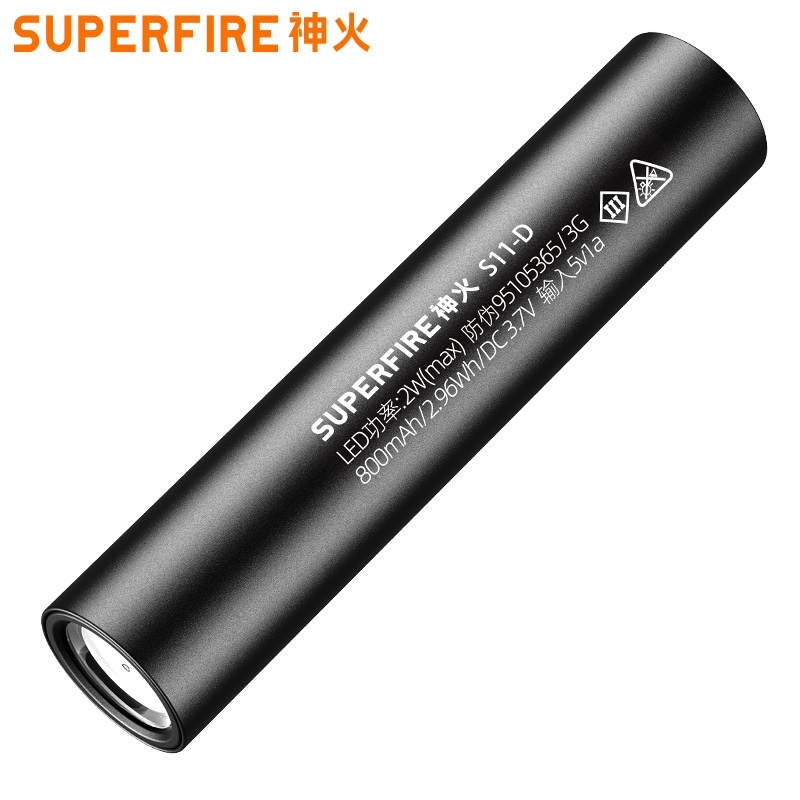 按壓尾部開關即開啟強光檔,續按調檔(強光-弱光-爆閃-關),任何檔位長按3s即開啟 SOS檔位,續按關閉光源。