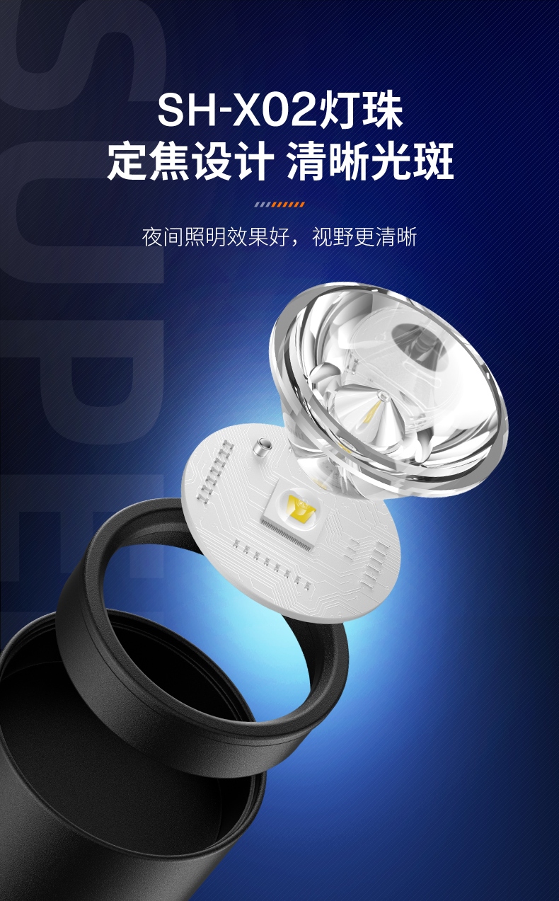 1、千米遠射,射程更遠,光斑更聚焦。 2、進口燈珠,亮度高,照明效果更好。 3、前后雙按鍵,光源一鍵點亮,高亮瞬間開啟。