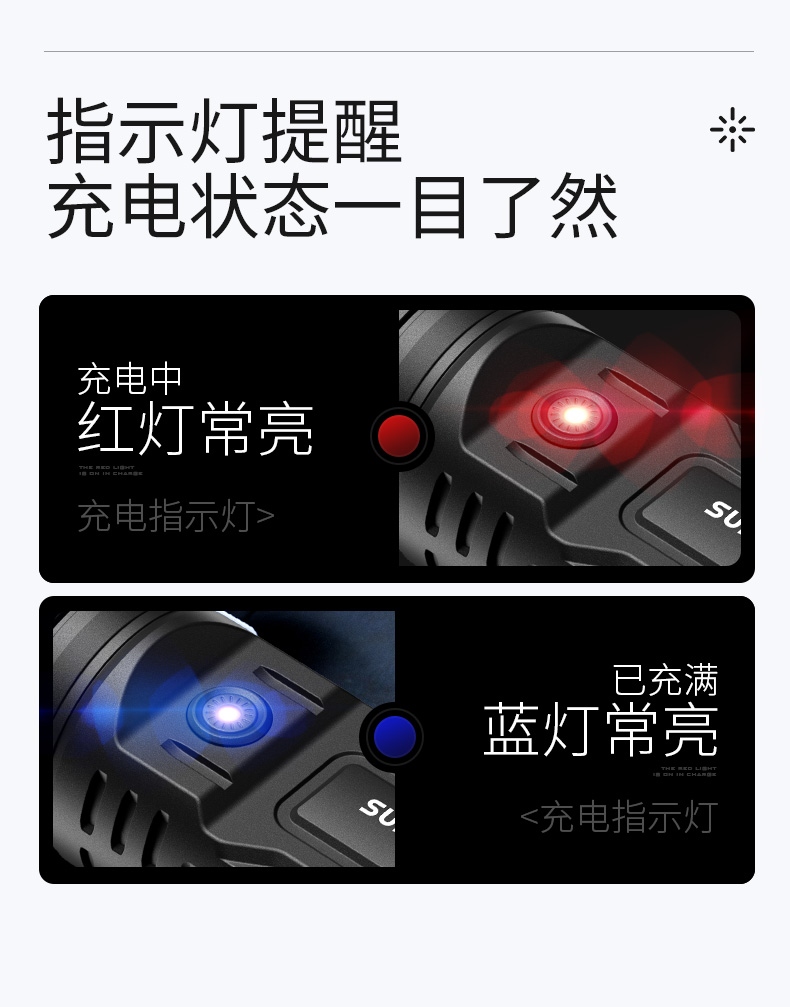 聚光主燈 亮度隨心 輕按后端開關按鈕,主燈強光點亮,續按依次切換主燈工作光-爆閃光。主燈開啟狀態下長按5秒,可實現光源色溫轉換。主燈關閉狀態下長按5秒,可開啟燈具最亮照明模式。 爆亮強光 亮如白晝 1500LM大功率高亮光源,點亮頃刻如白晝