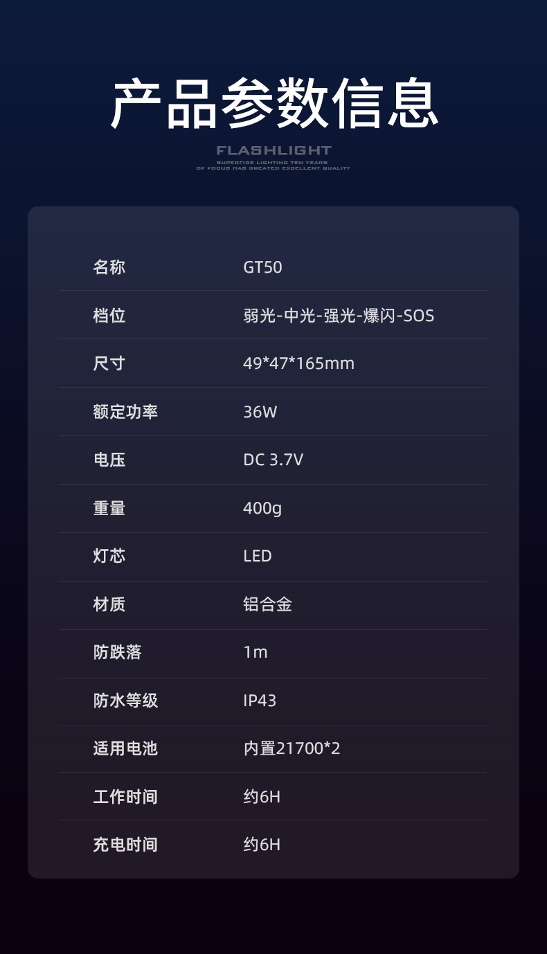 1、六檔調光,可滿足不同使用場景下的照明需求。 2、進口高亮朗明納斯燈珠,照明效果更好。 3、含檔位記憶,任意檔位快捷關機 ,開機恢復關機前檔位。