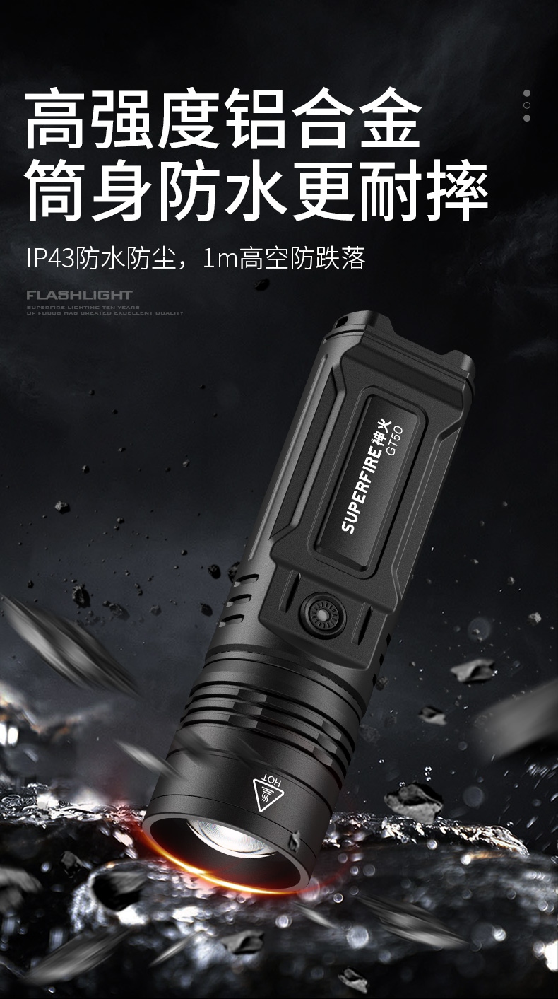 1、大功率燈芯:輸出強力最高可達2900LM,照射范圍廣,420m直光遠射; 2、高顏值:鋁合金機身搭配磨砂效果,及抗劃抗滑又耐臟,金屬質感更好; 3、高強度防水:內置電池,一體式設計,不懼風雨;
