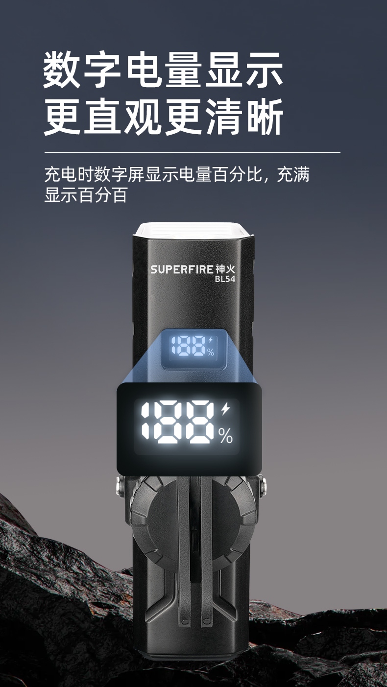 1.單擊左邊開關開啟感應功能,同時開啟強光檔,續按關閉感應功能(關閉感應功能,光源不會關閉),當感應功能開啟時,單擊右邊開關可正常調節檔位。 2.多樣化充電,使用方便:設有Type-c充電口,可使用充電器、充電寶、電腦等設備為燈具充電。 3.電量顯示:實時