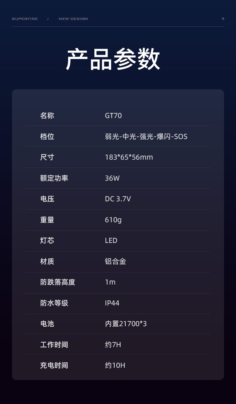 SUPERFIRE神火手電筒GT70