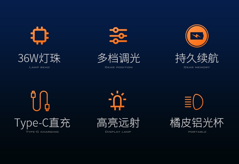 1、多檔調光,可滿足不同使用場景下的照明需求; 2、高強度防水:內置電池,一體式設計,不懼風雨; 3、Type-C充電口,兼容市面通用充電線,正反盲插。