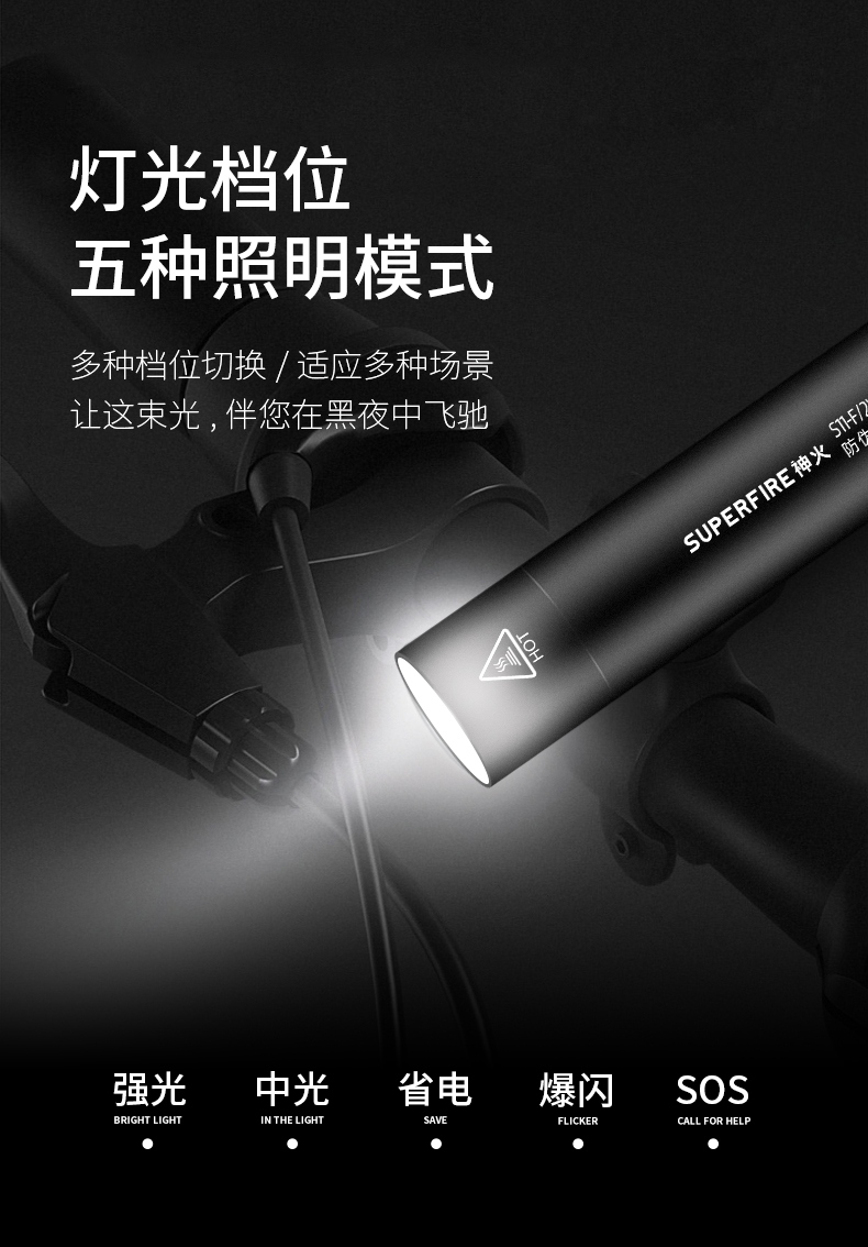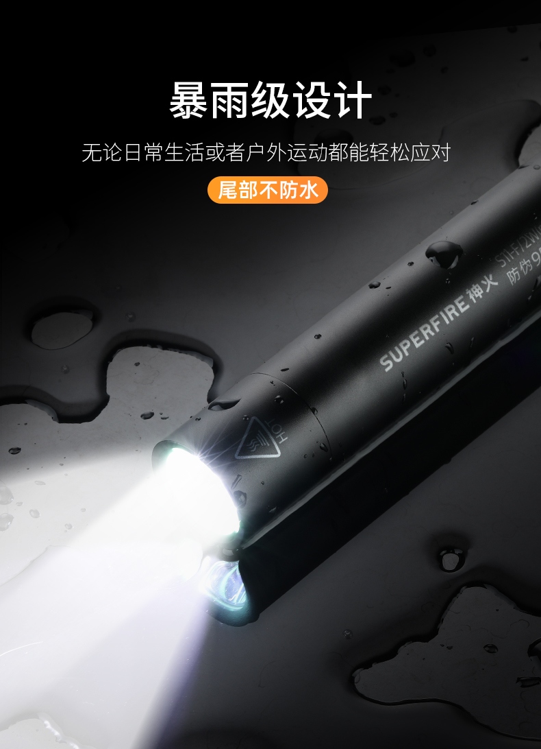1、千米遠射,射程更遠,光斑更聚焦。 2、進口燈珠,亮度高,照明效果更好。 3、前后雙按鍵,光源一鍵點亮,高亮瞬間開啟。