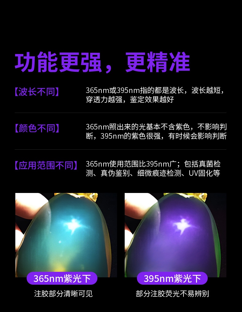 5、365nm紫光燈珠,波長短,穿透性更強。