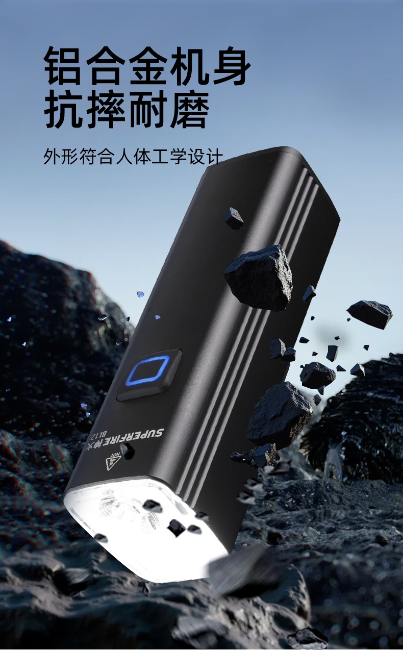 聚光主燈 亮度隨心 輕按后端開關按鈕,主燈強光點亮,續按依次切換主燈工作光-爆閃光。主燈開啟狀態下長按5秒,可實現光源色溫轉換。主燈關閉狀態下長按5秒,可開啟燈具最亮照明模式。 爆亮強光 亮如白晝 1500LM大功率高亮光源,點亮頃刻如白晝