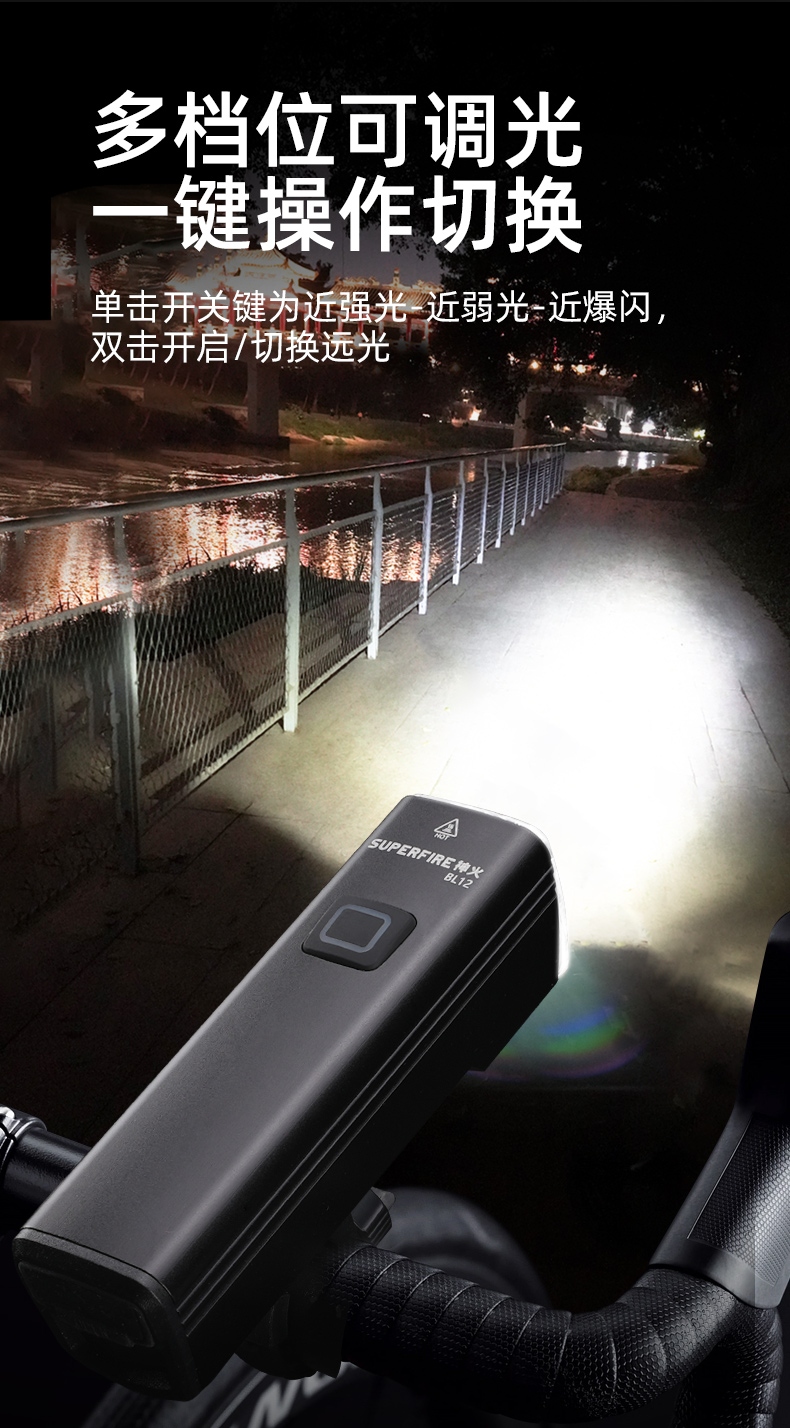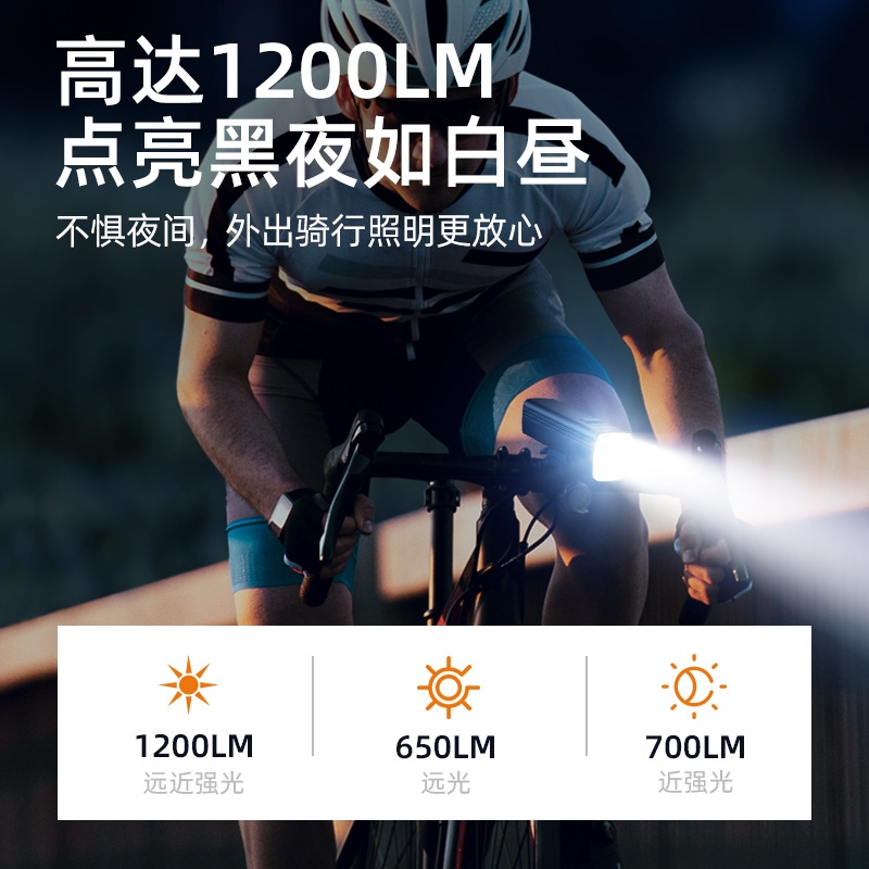 1、高達1200LM,點亮黑夜如白晝,不懼夜間,外出騎行照明更放心;