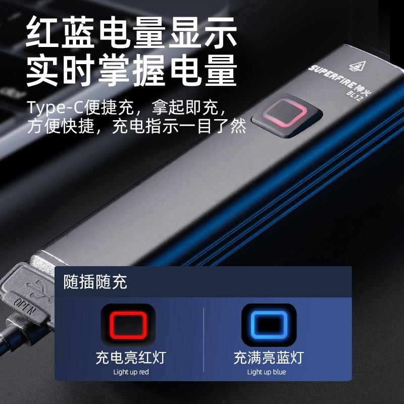 5、Tyре-c便捷充,紅藍電量顯示,實時掌握電量,充電指示一目了然;