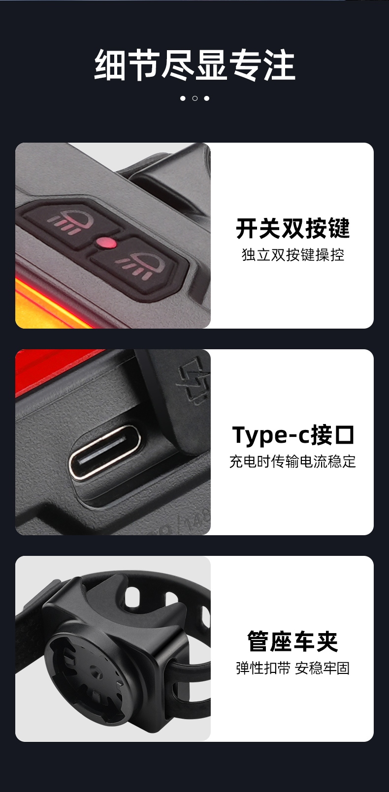 3、尾燈自帶擋位記憶功能,開燈后5秒內單擊切換擋位,5秒后單擊關閉尾燈。