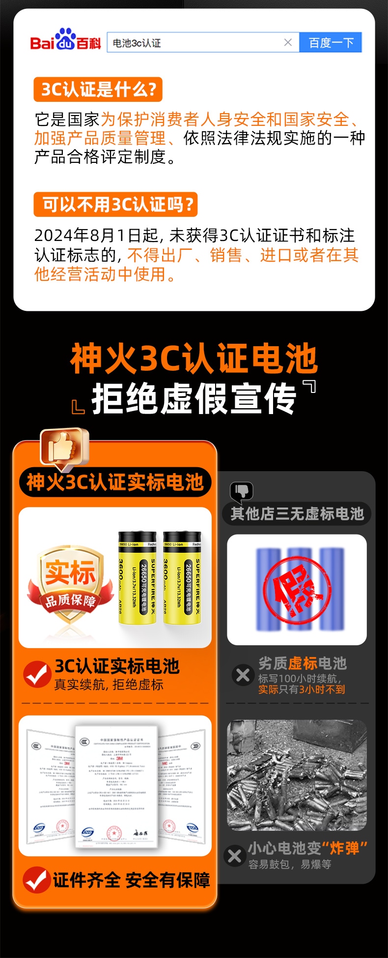 1、3C認證實標電池,真實續(xù)航,拒絕虛標,證件齊全安全有保障、澎湃性能、標準電壓動力強勁; 2、防爆外殼,高強度不銹鋼設計,有效降低電池因碰撞,沖擊而短路的風險; 3、持久耐用,可循環(huán)使用500+次,節(jié)能環(huán)保,經濟耐用;
