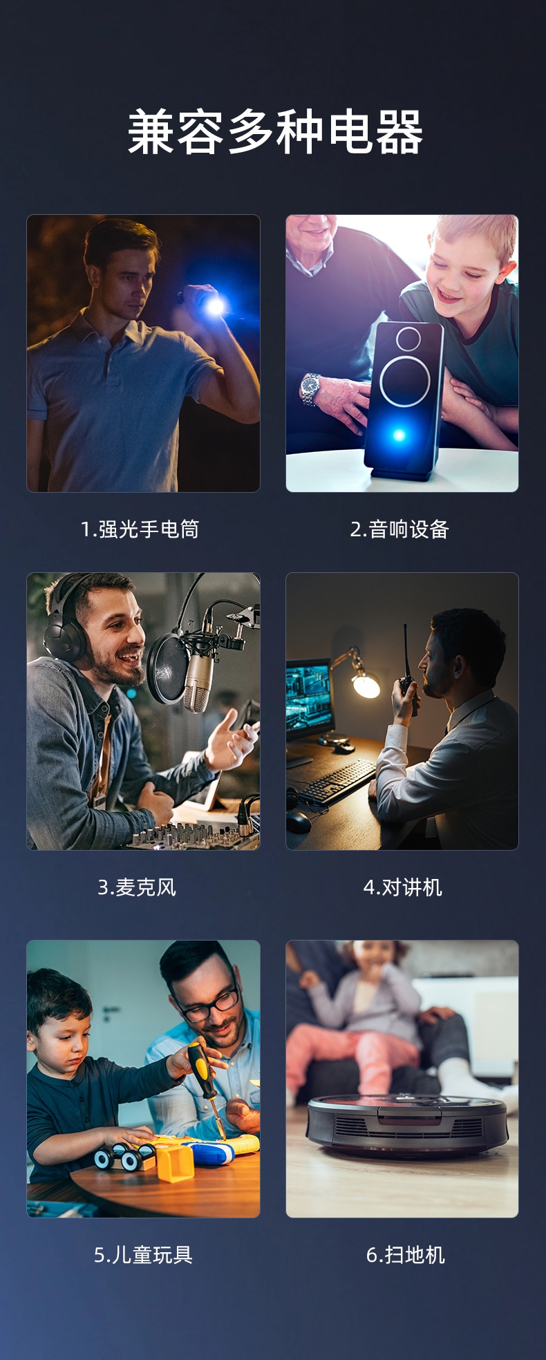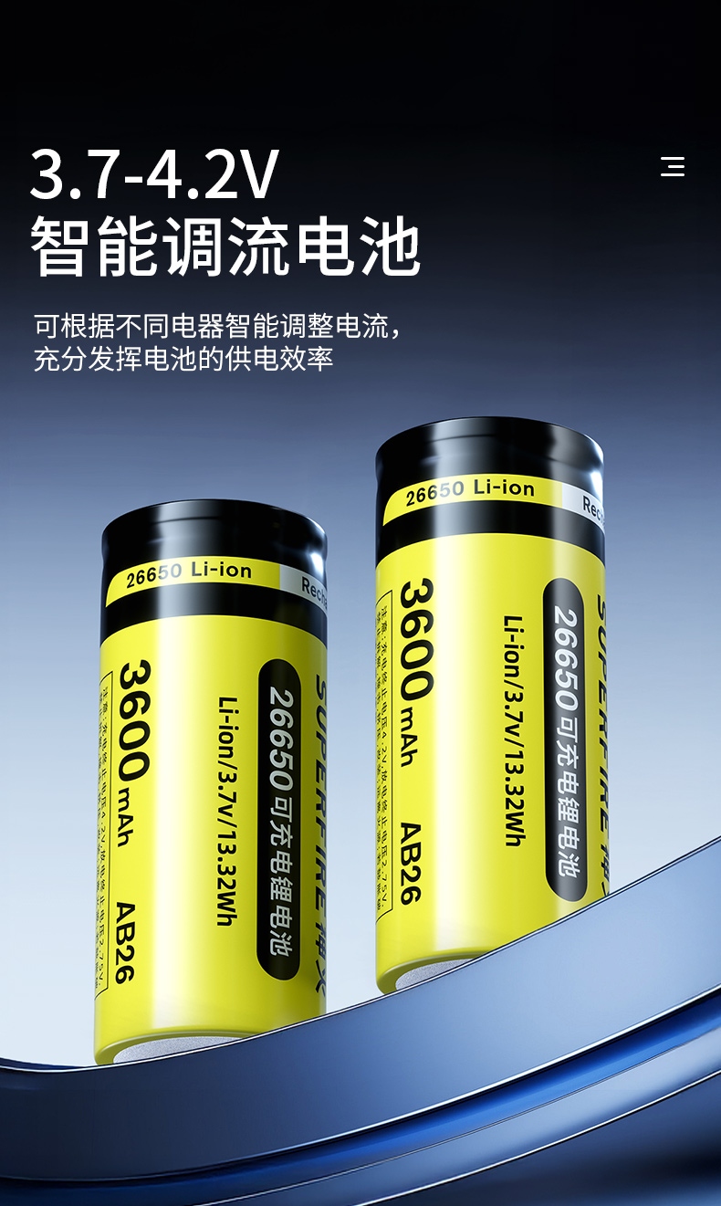 5、3.7-4.2V智能調流,可根據不同電器智能調整電流,充分發(fā)揮電池的供電效率。