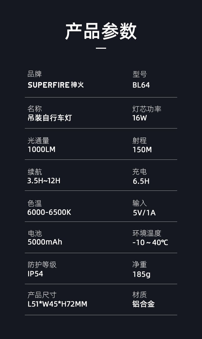 聚光主燈 亮度隨心 輕按后端開關按鈕,主燈強光點亮,續按依次切換主燈工作光-爆閃光。主燈開啟狀態下長按5秒,可實現光源色溫轉換。主燈關閉狀態下長按5秒,可開啟燈具最亮照明模式。 爆亮強光 亮如白晝 1500LM大功率高亮光源,點亮頃刻如白晝