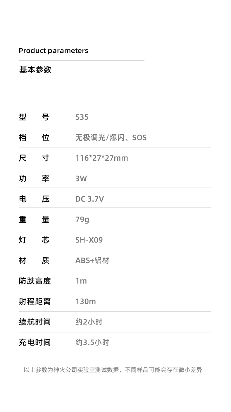 1、千米遠射,射程更遠,光斑更聚焦。 2、進口燈珠,亮度高,照明效果更好。 3、前后雙按鍵,光源一鍵點亮,高亮瞬間開啟。