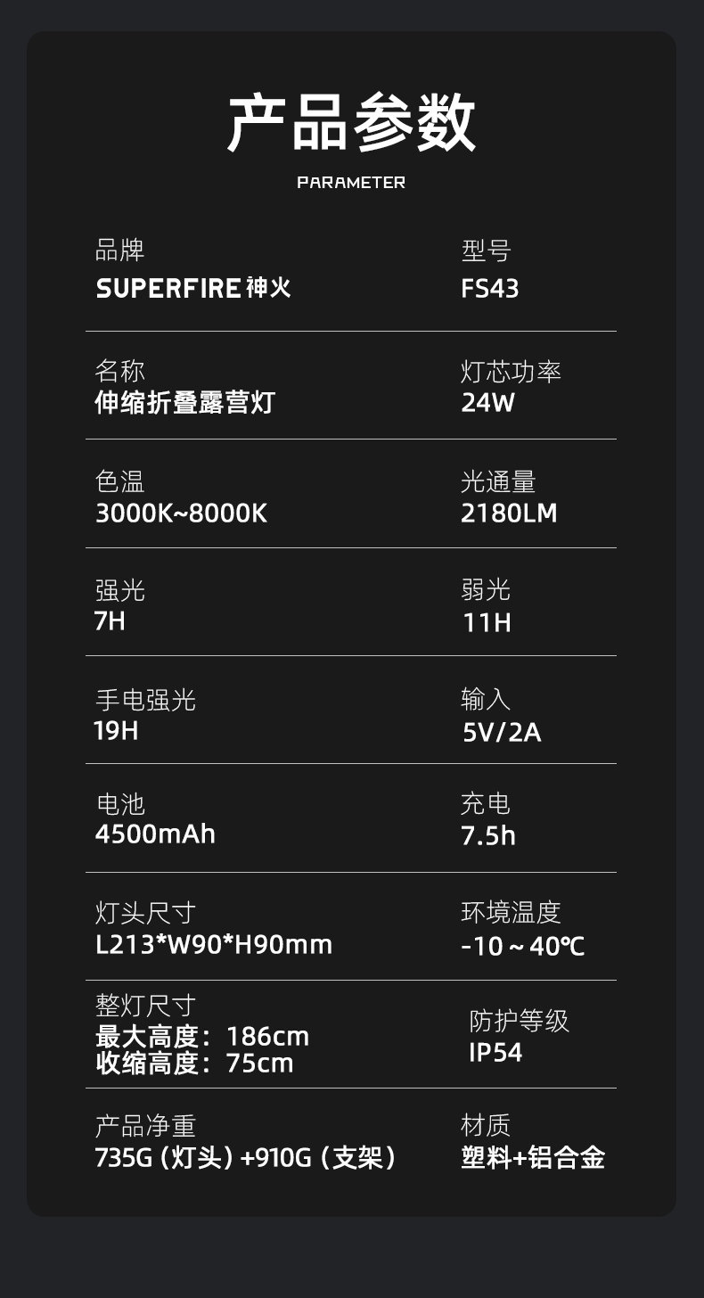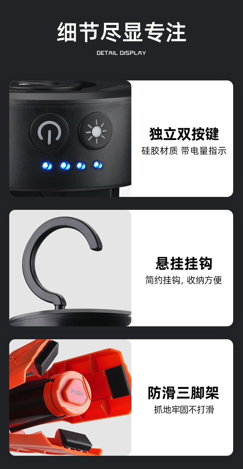 3、升降伸縮燈桿,多種形態更易使用,一鍵展開三腳架,三段式鎖栓設計,高度隨心拉升;