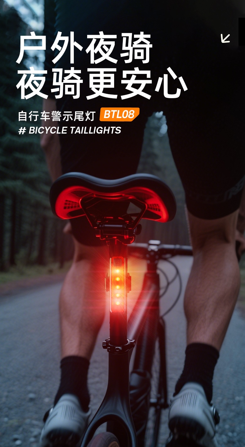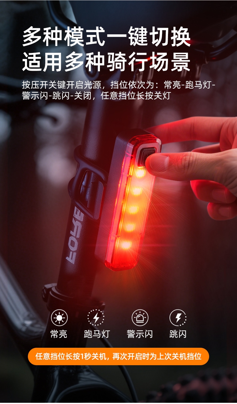 1、多種燈光模式,一鍵切換,適用多種騎行場景;