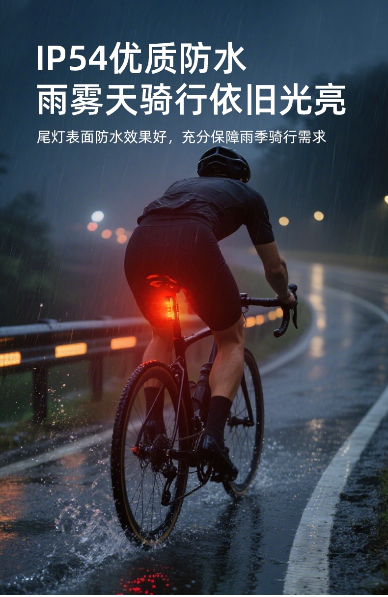 6、IP54優(yōu)質(zhì)防水,雨霧天騎行依舊光亮,充分保障雨季騎行需求;