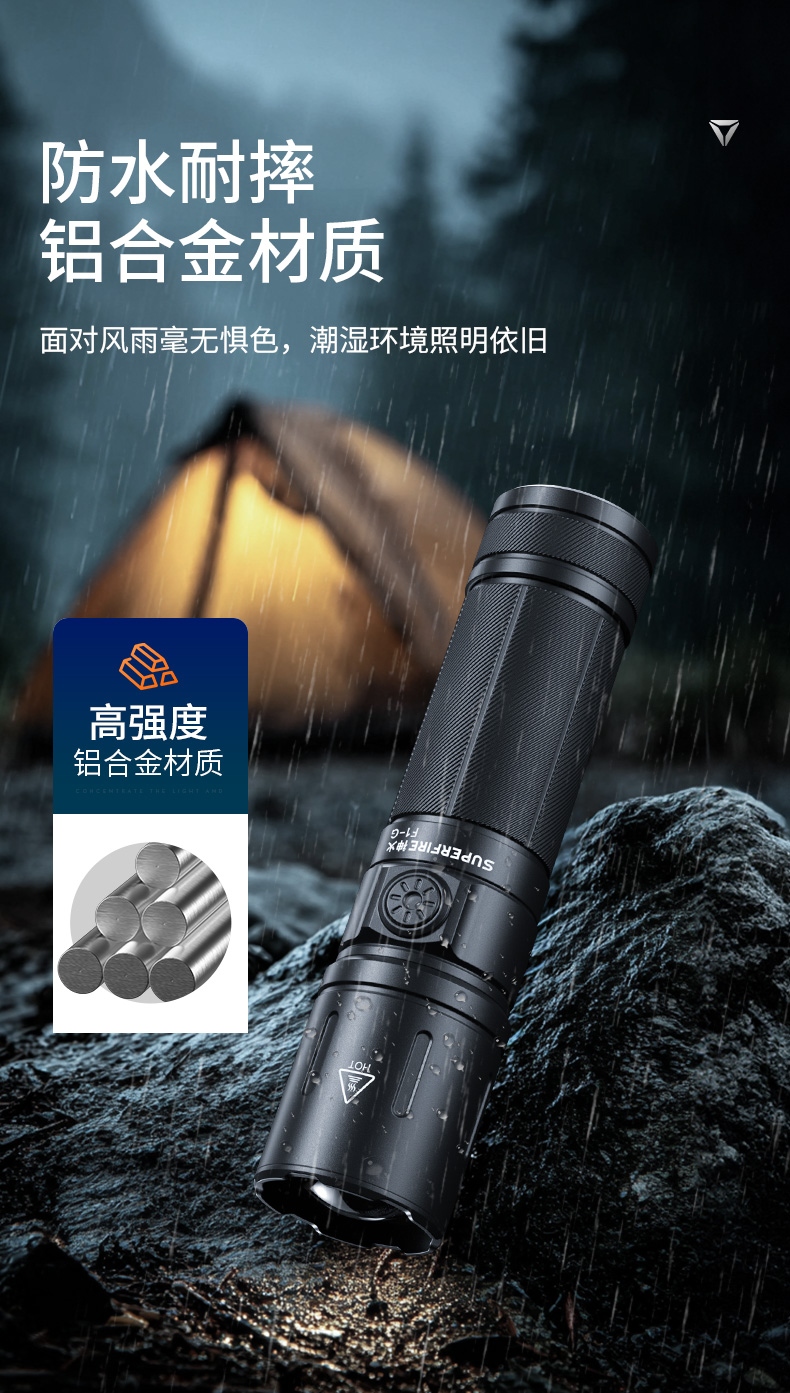 6、鋁合金筒身,防水耐摔。