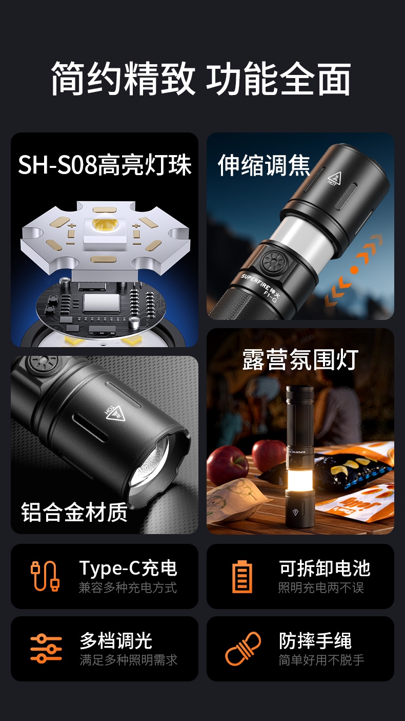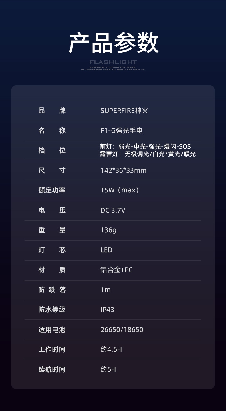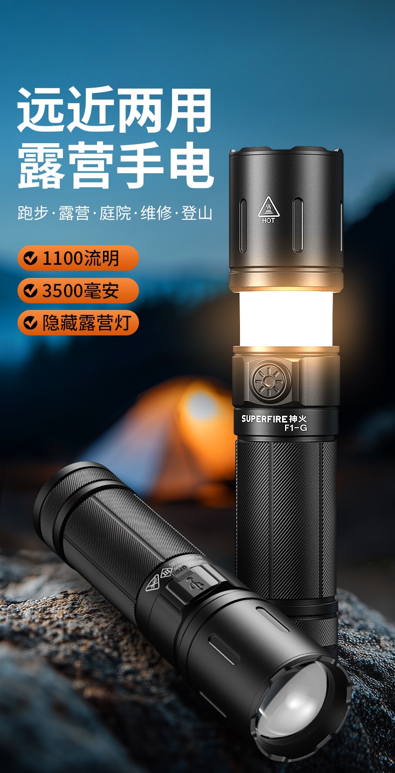 SUPERFIRE神火遠近兩用露營手電筒F1-G