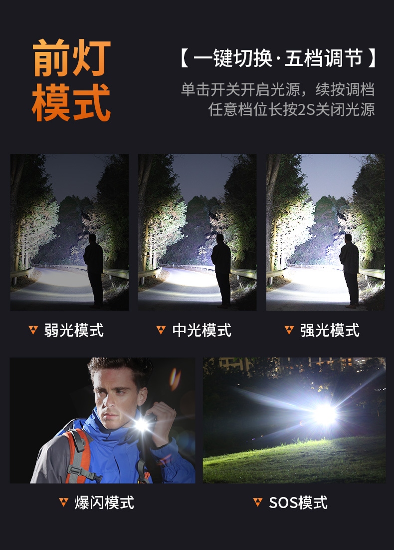 1、兩種照明模式,多檔調光,可滿足不同使用場景下的照明需求。 2、多種安全程序,可有效保護手電使用安全,延長手電使用壽命。 3、單按鍵設計簡單,操作便捷。