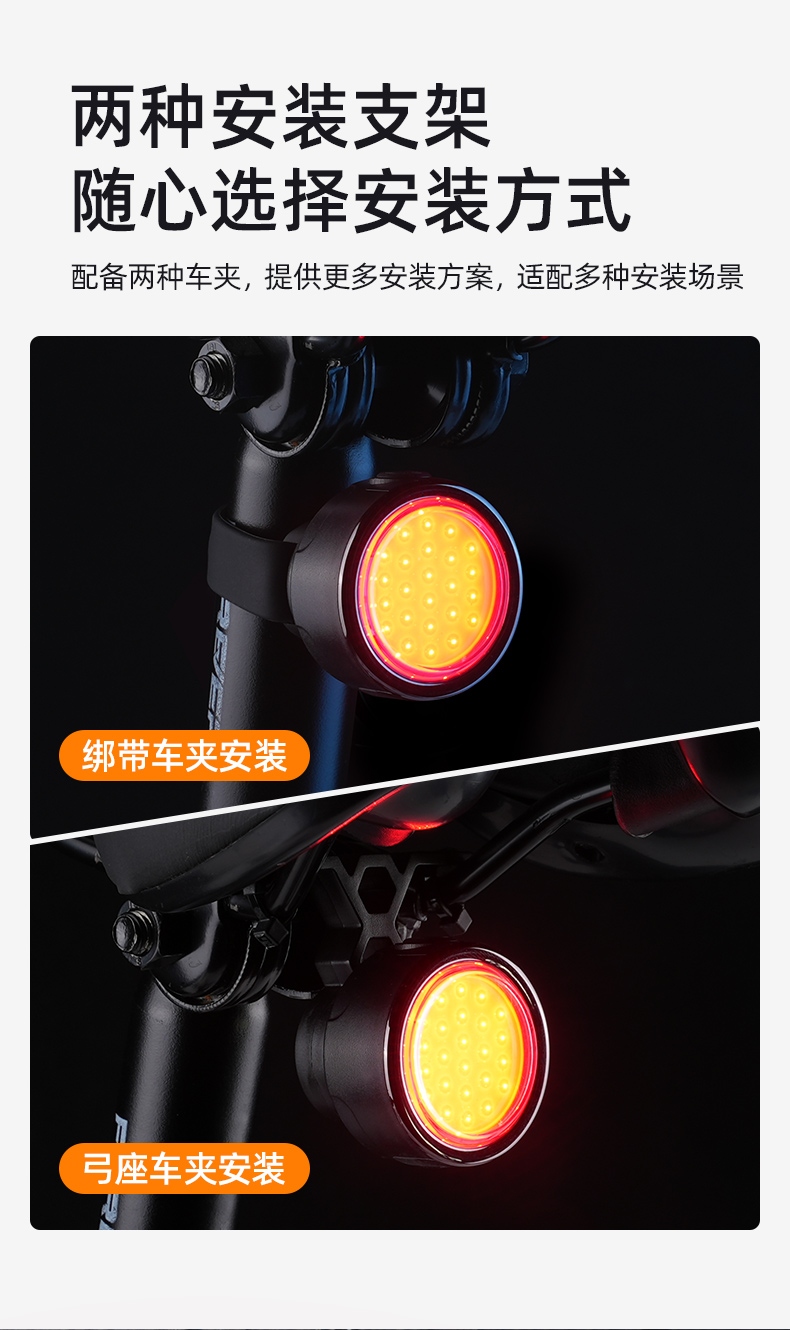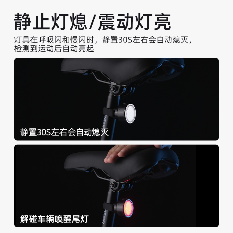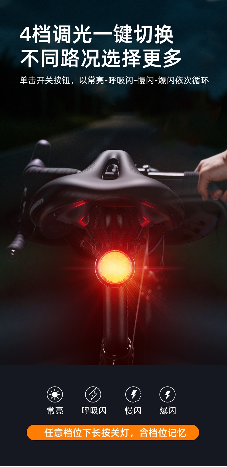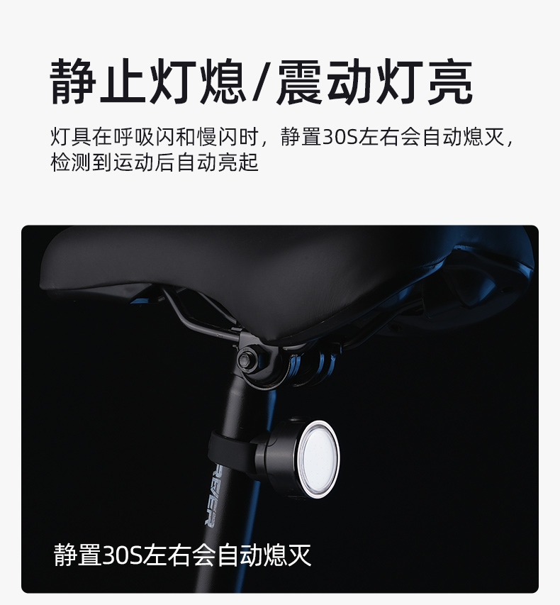 1、長按2秒開/關機,單擊切換擋位:常亮-呼吸閃-慢閃-爆閃,依次循環,任意擋位下長按關閉。燈具自帶擋位記憶功能,再次開啟時為之前關閉擋位; 2、剎車感應:剎車感應會隨燈具開啟自動啟動,燈具關閉時也隨之關閉; 3、自動啟停(呼吸閃,慢閃):燈具在呼吸閃和慢