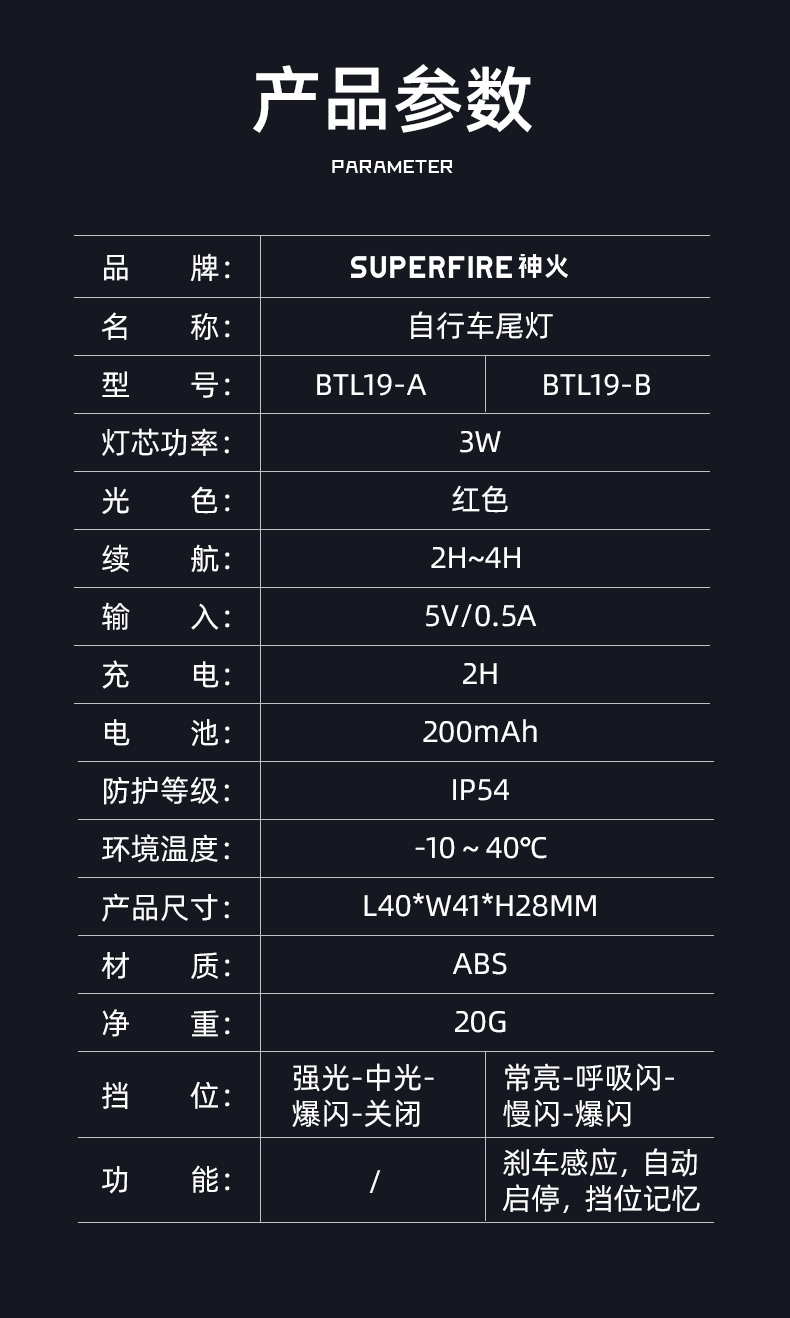 產品中心 > 戶外照明 > 自行車燈 > 自行車尾燈 > SUPERFIRE神火自行車尾燈BTL19-A/B