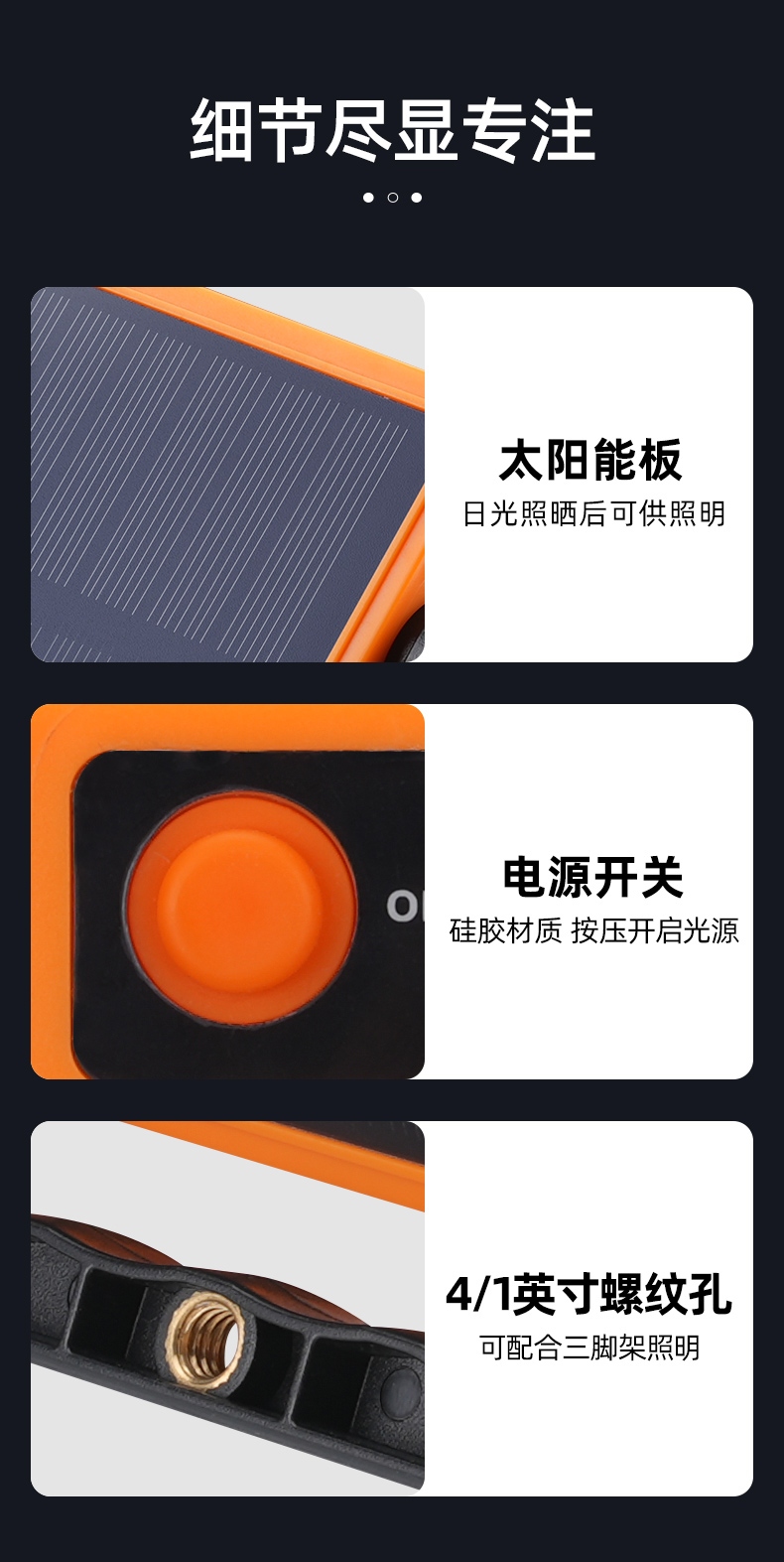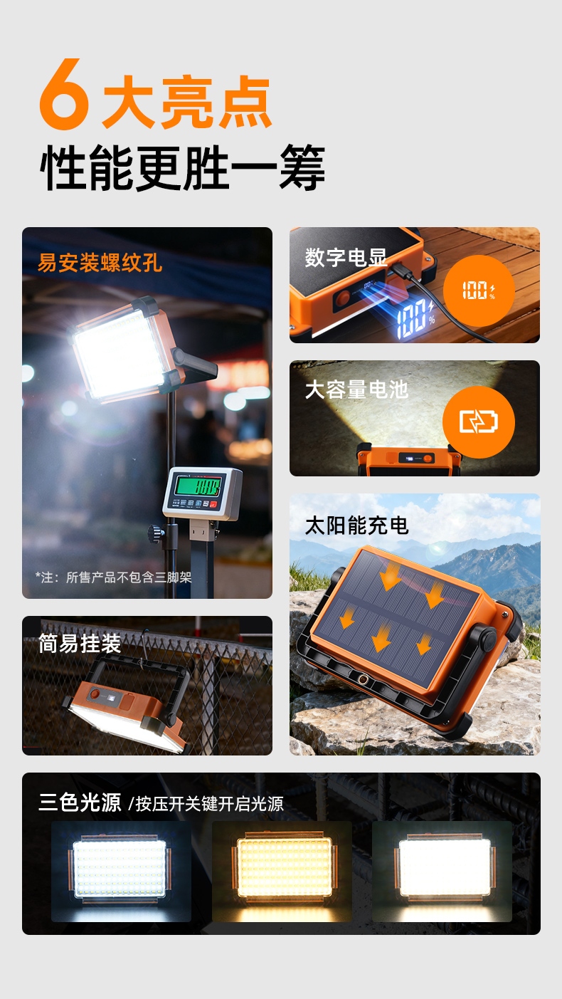 主要賣點:三色可調,數字電顯,太陽能充電,大容量電池,4/1英寸螺紋孔,掛裝。