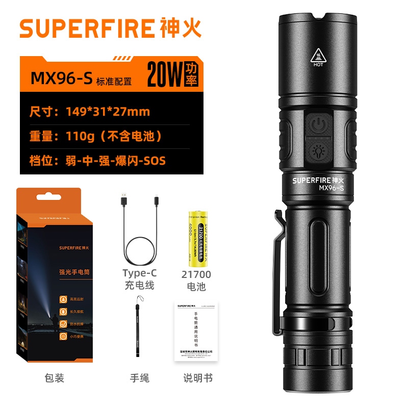 產品中心 > 戶外照明 > 手電筒 > 強光手電 > SUPERFIRE神火調焦手電筒MX96-S