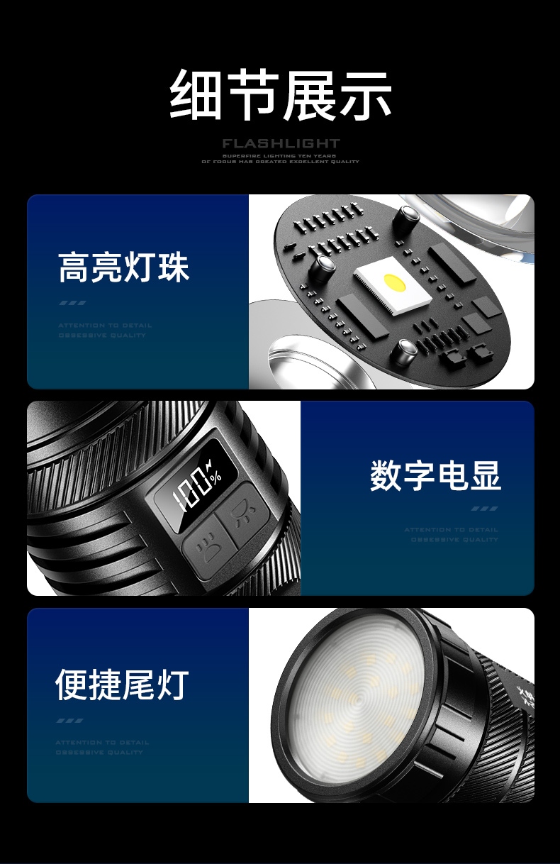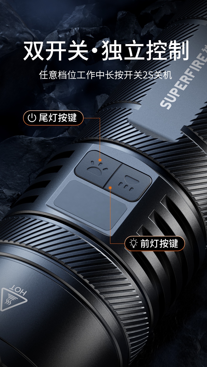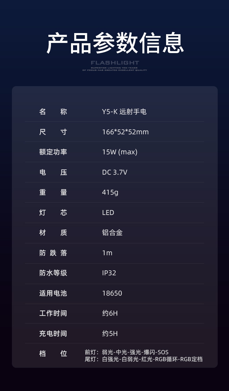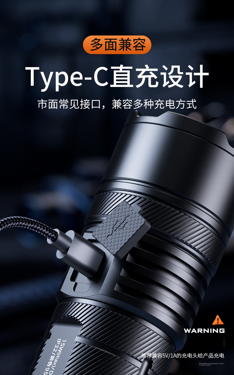 8、鋁合金筒身,防水耐摔。