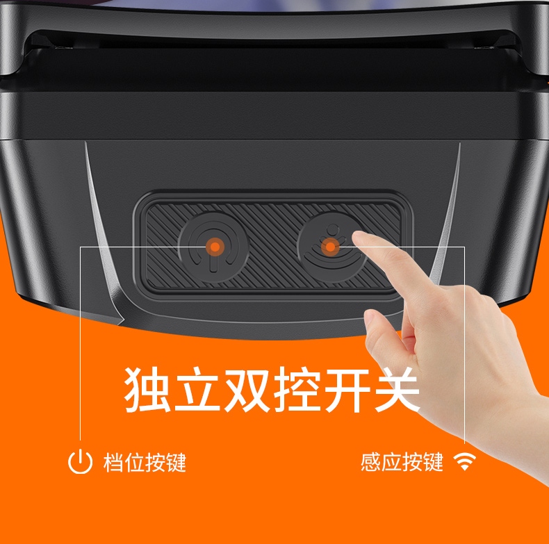2、單擊左邊開關開啟感應功能,續按關閉感應功能,當感應功能開啟時,單擊右邊開關可正常調節檔位。