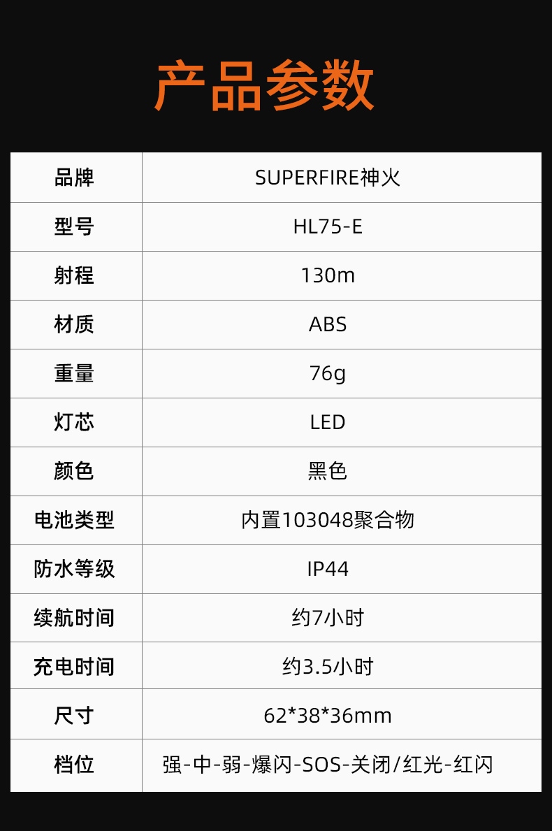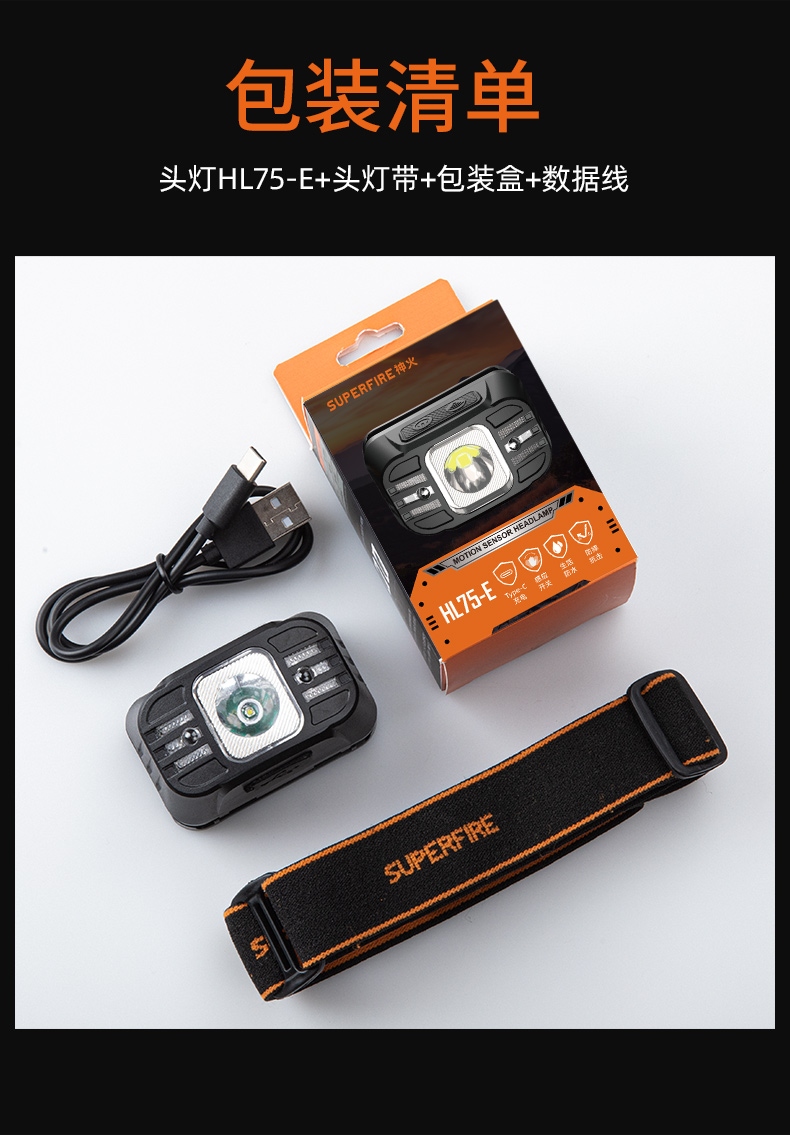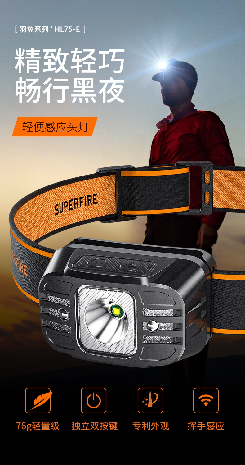 強光亮度,運動頭燈,前后均衡設計,輕便不壓頭,可調節式頭燈帶,佩戴方便舒適,伸縮調焦,光照范圍大,照射距離遠,頭燈角度調節,超90度角度隨意調節,適宜各種環境使用